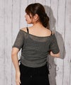 サイドのシャーリングデザインでシルエット調整ができ、スタイルアップ効果も◎