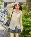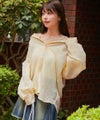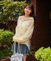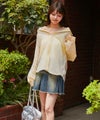 インナーにキャミやタンクを合わせてオフショルで着れば、シアー素材ならではの女性らしい抜け感コーデに。