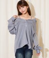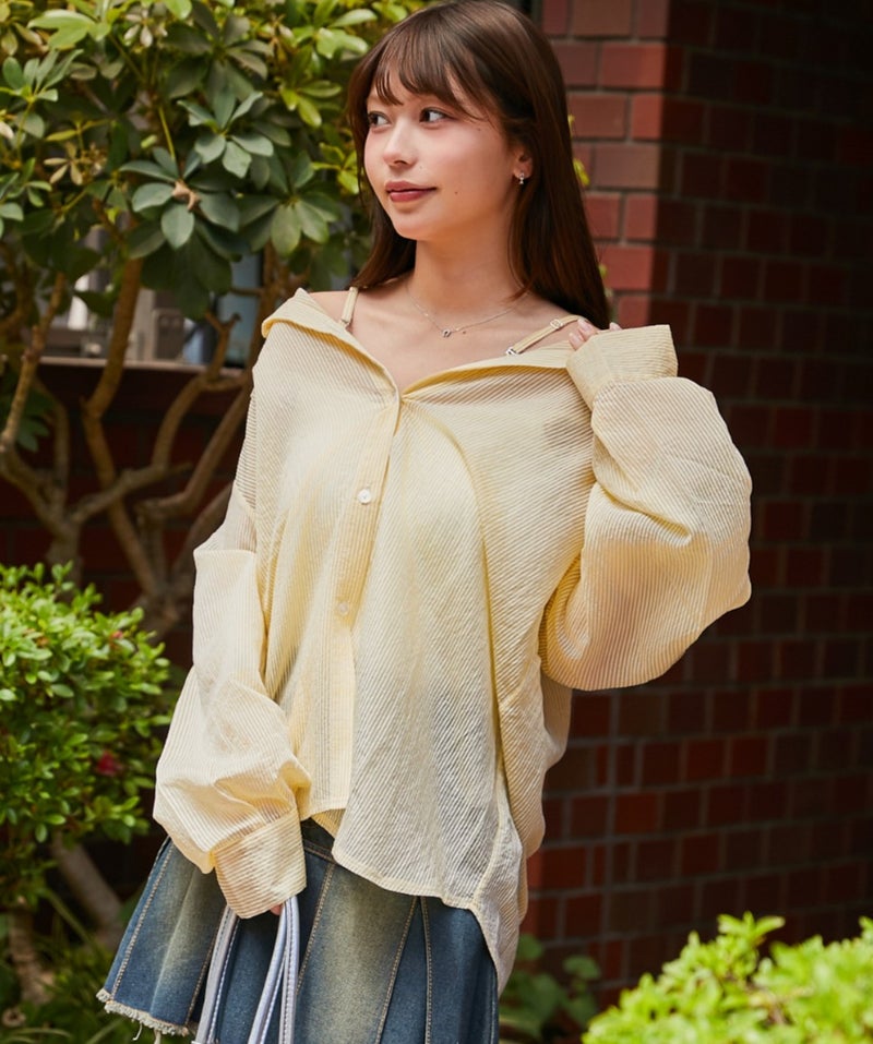 取り外し可能なストラップ付きで、シャツ・オフショル・ビスチェ風と3WAYで楽しめるオーバーシャツ。