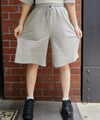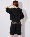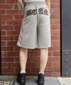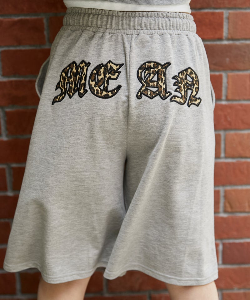 バックに大胆に配置されたレオパード柄ロゴ刺繍が目を惹くハーフパンツ。