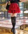 《ドット柄×ティアードフリルで華やぐ ミニスカート》