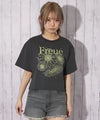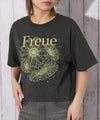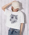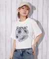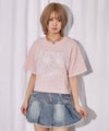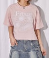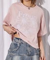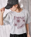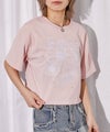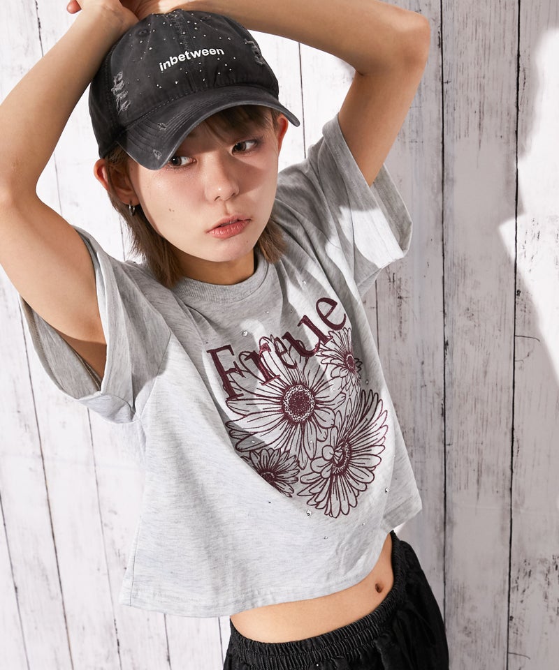 《フラワー刺繍×ラインストーンロゴが目を惹く コンパクトTシャツ》