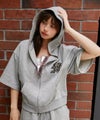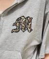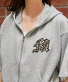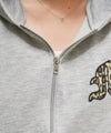 フロントにあしらわれたレオパード柄のロゴ刺繍が目を惹くZIPパーカー。