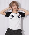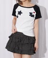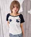 《星ワッペン×配色ラグランがポイント コンパクトTシャツ》