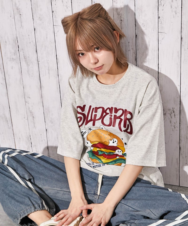 《おばけ×バーガープリントが目を惹く ストリート感たっぷりのBIGTシャツ》