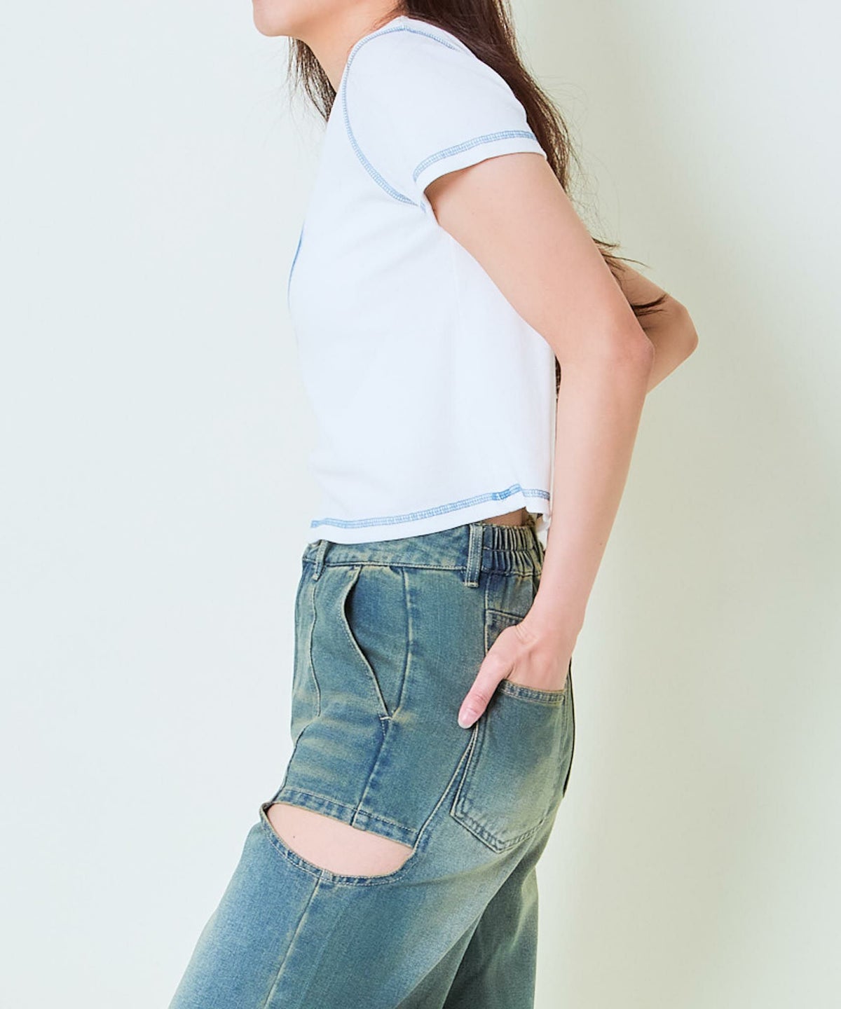他の画像を見る 《ハートロゴ×配色ステッチ》レディース テレコ半袖Tシャツ クロップド丈 春夏秋 SALE 通常価格 ¥ 4,389 のところ 販売価格 ¥ 1,089 税込 カートに入れる お気に入りに登録する