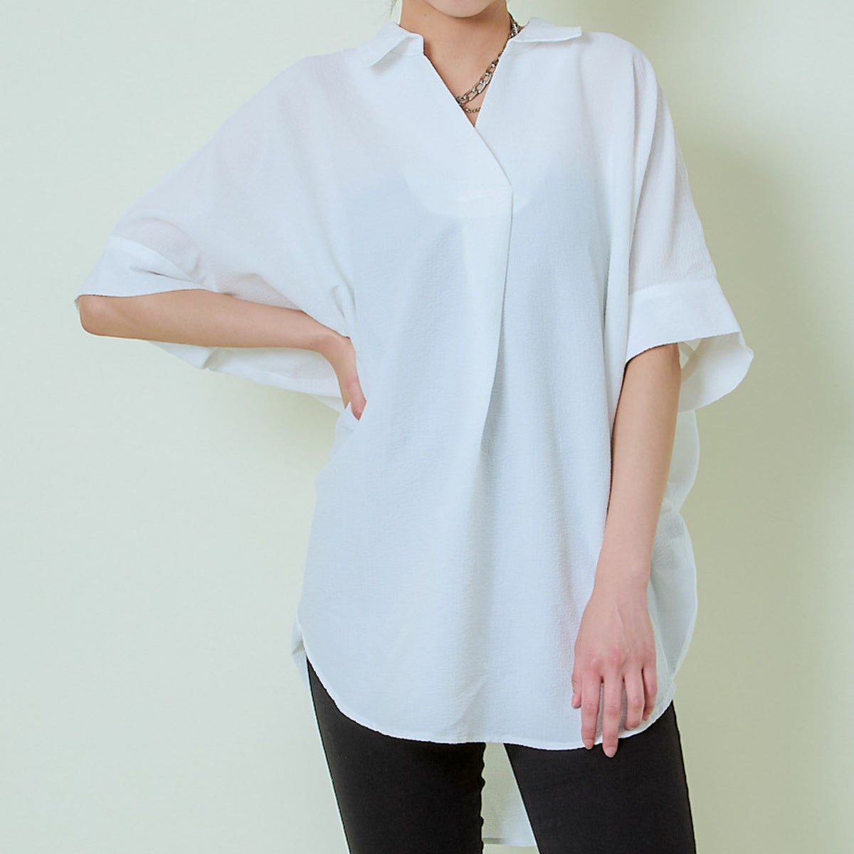 他の画像を見る 《抜け感Vネック×ゆるBIGシルエット》レディース 半袖シャツ 体型カバー 春夏秋 SALE 通常価格 ¥ 5,489 のところ 販売価格 ¥ 1,639 税込 カートに入れる お気に入りに登録する