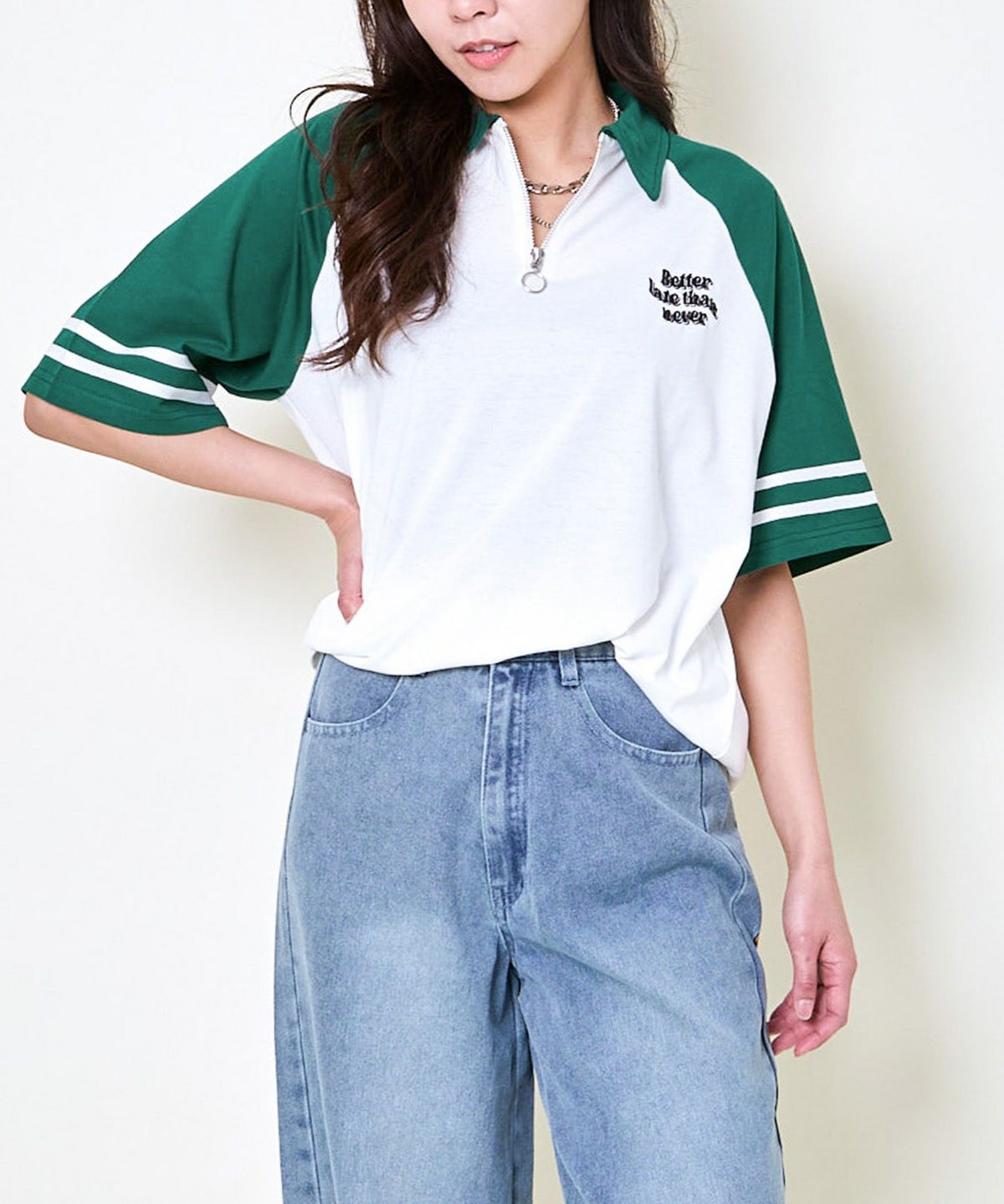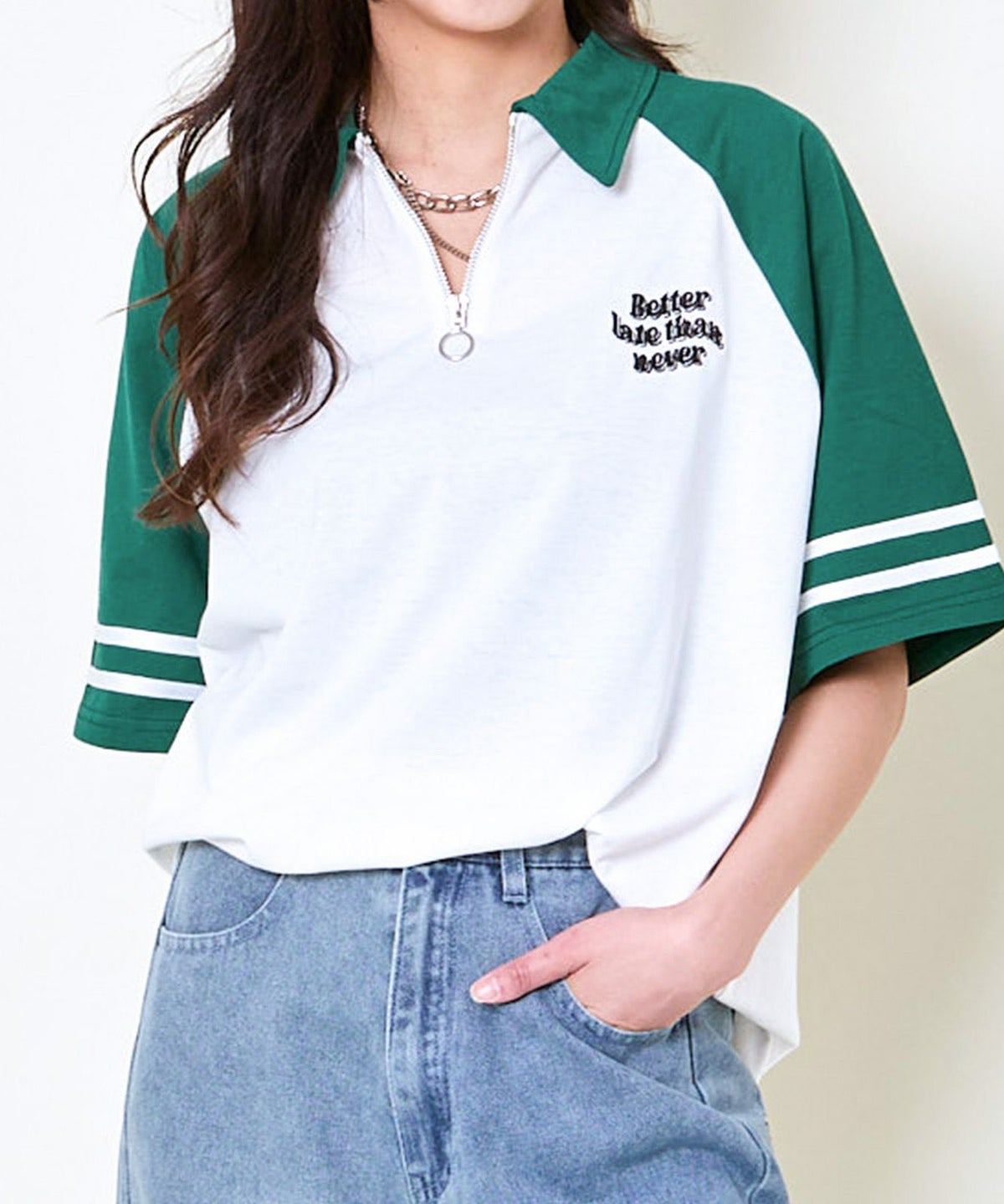 他の画像を見る 《配色刺繍×ハーフZIP》レディース オーバーサイズTシャツ スポーティ 春夏秋 SALE 通常価格 ¥ 4,939 のところ 販売価格 ¥ 1,639 税込 カートに入れる お気に入りに登録する
