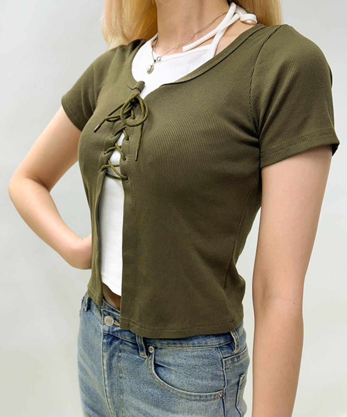 他の画像を見る 《編み上げ×ピグメント加工》レイヤード風コンパクトトップス 2BUY10%OFF 定価 ¥ 4,939 のところ SALE価格 ¥ 2,189 税込 カートに入れる お気に入りに登録する
