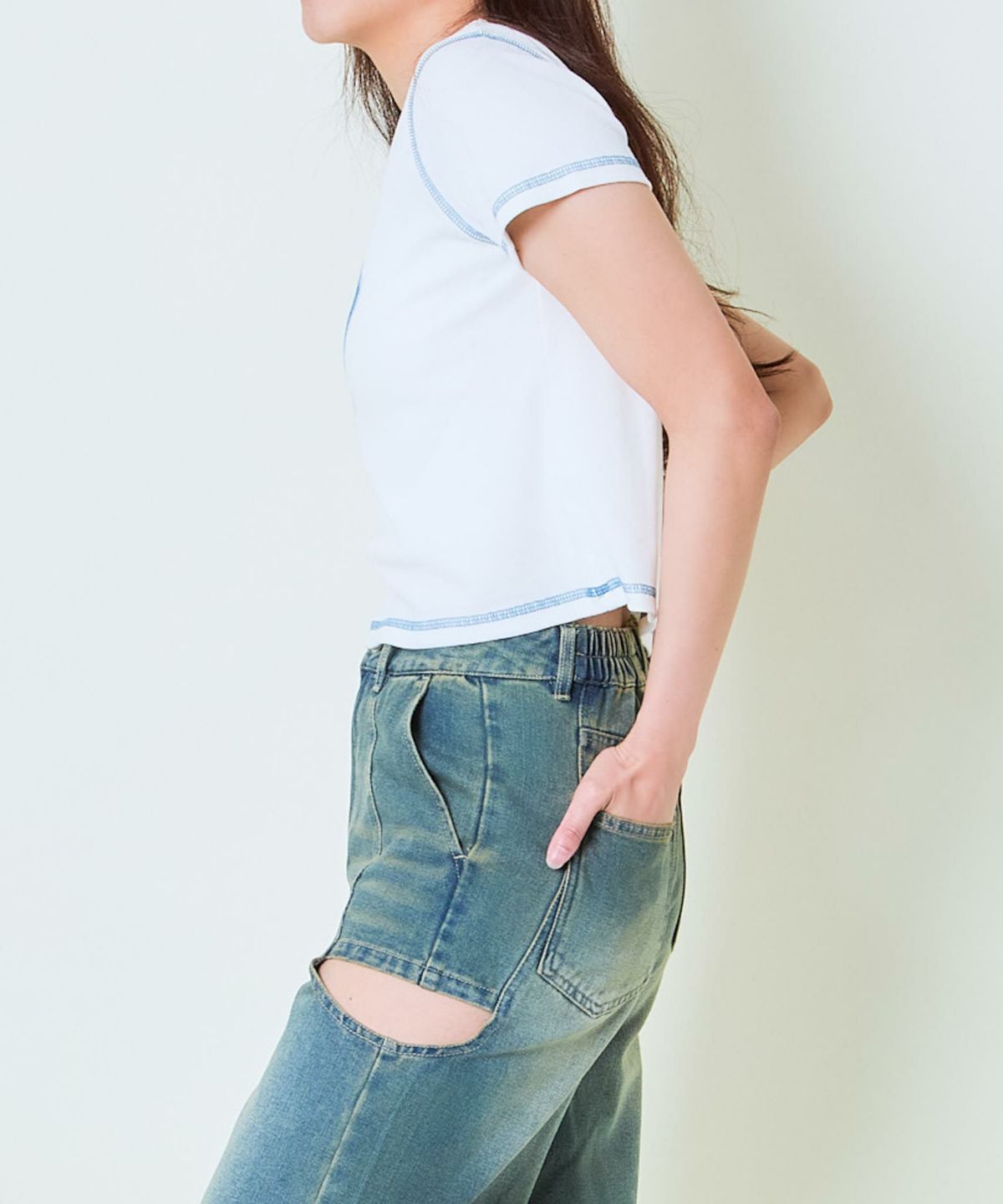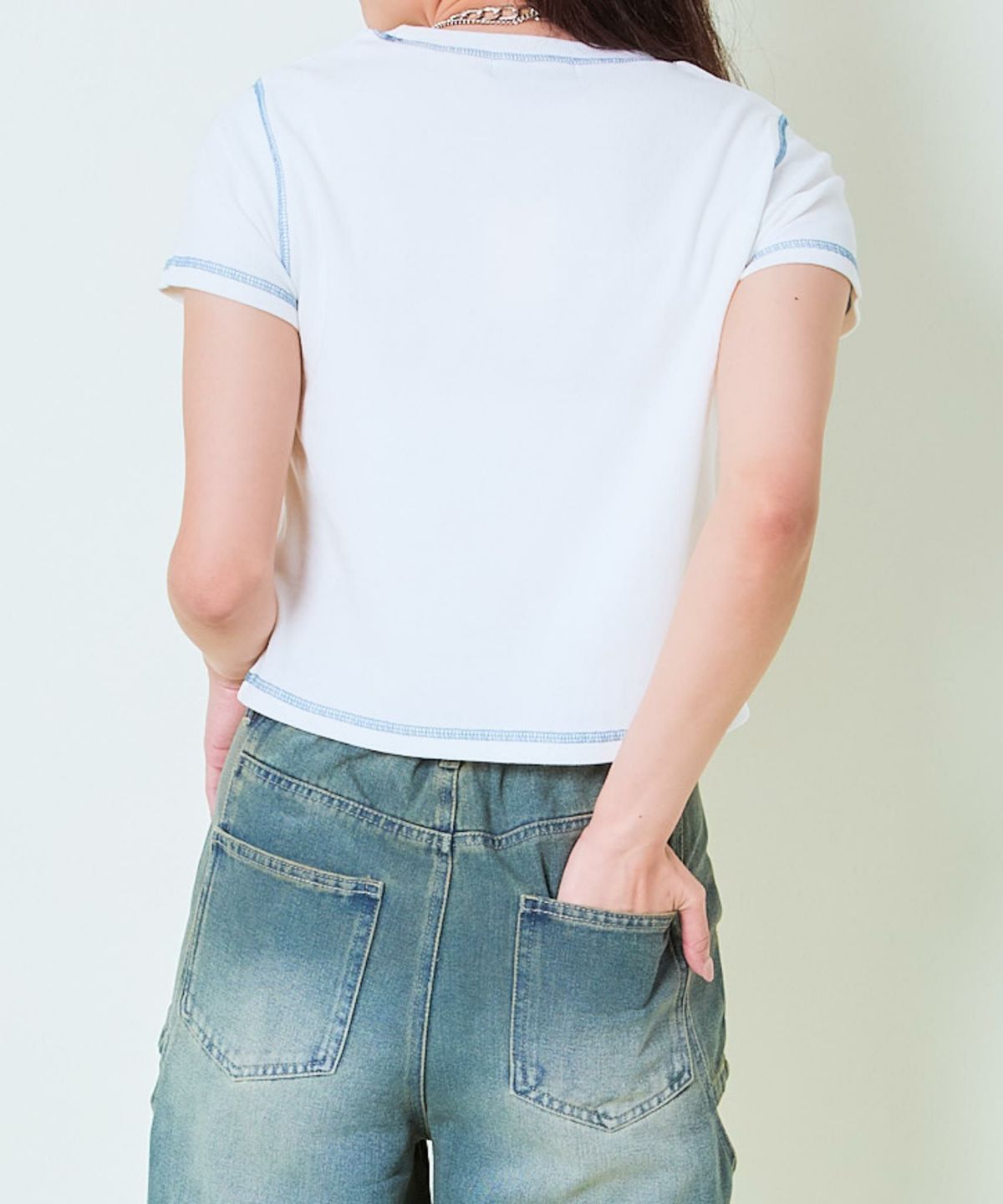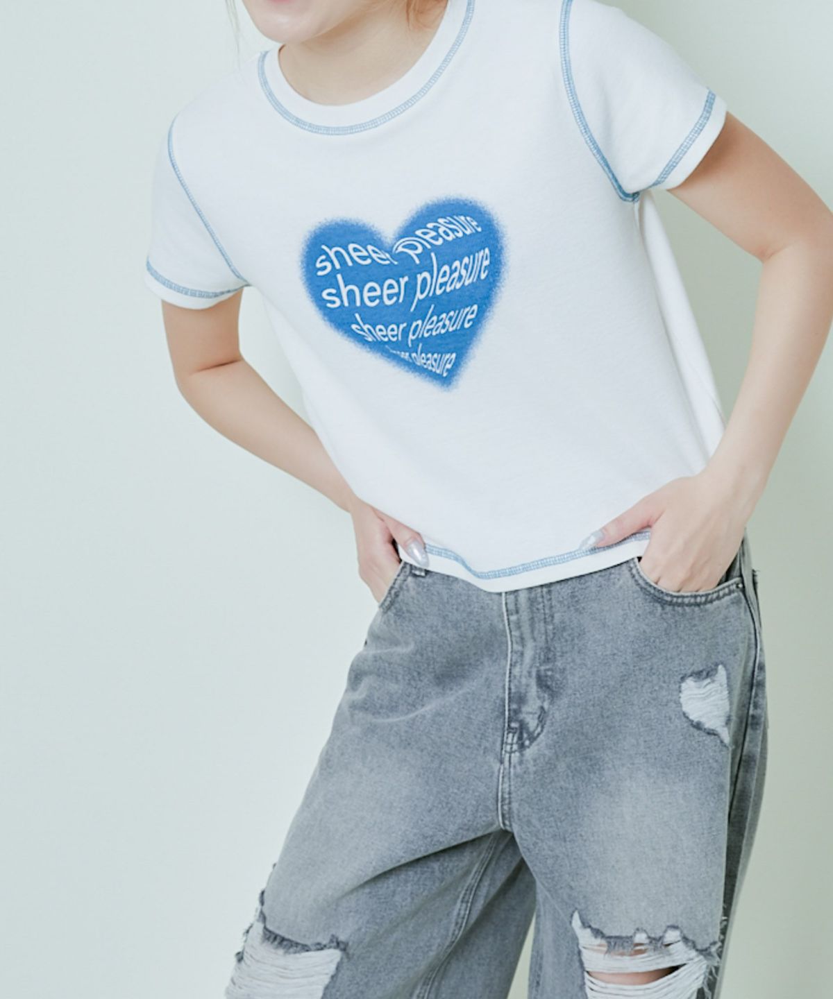 他の画像を見る 《ハートロゴ×配色ステッチ》レディース テレコ半袖Tシャツ クロップド丈 春夏秋 2BUY10%OFF 定価 ¥ 4,389 のところ SALE価格 ¥ 1,089 税込 カートに入れる お気に入りに登録する