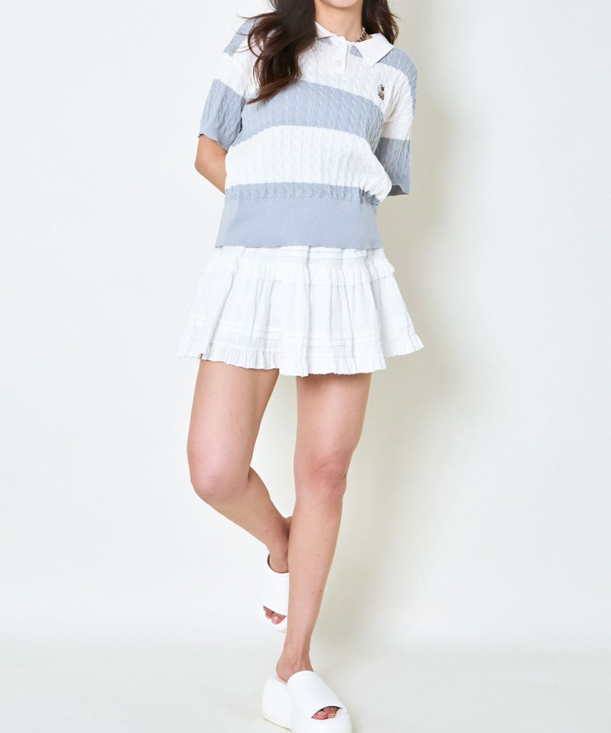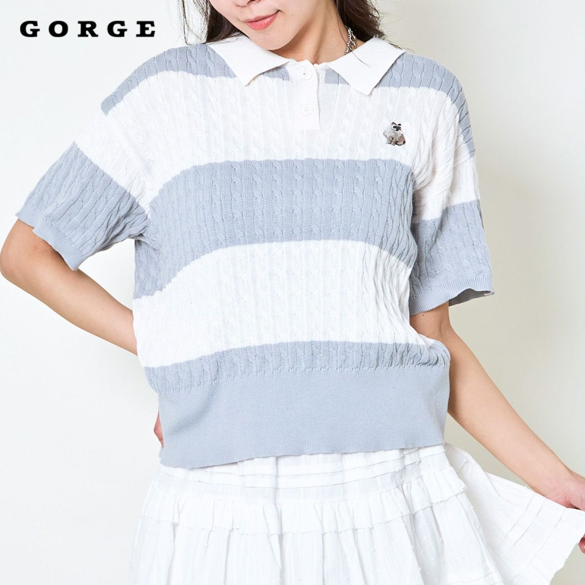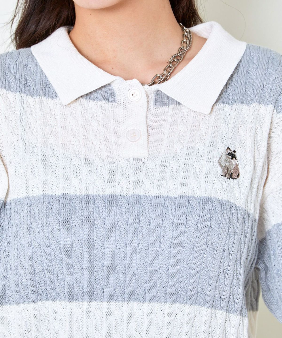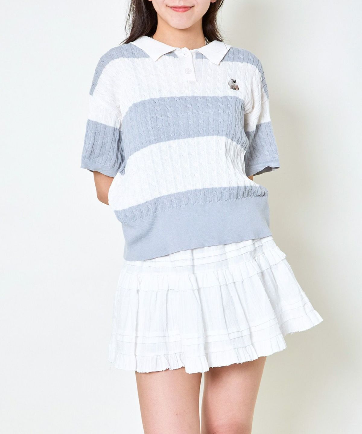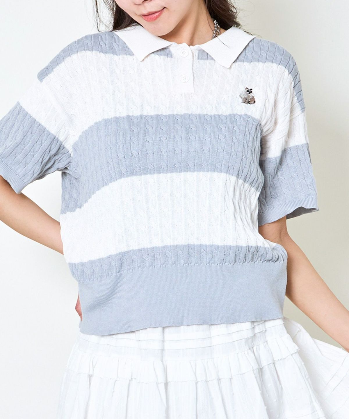 他の画像を見る 《ワンポイント刺繍×太ボーダー》レディース ケーブル編み 半袖ポロニット 春夏秋 2BUY10%OFF 定価 ¥ 4,939 のところ SALE価格 ¥ 1,975 税込 カートに入れる お気に入りに登録する
