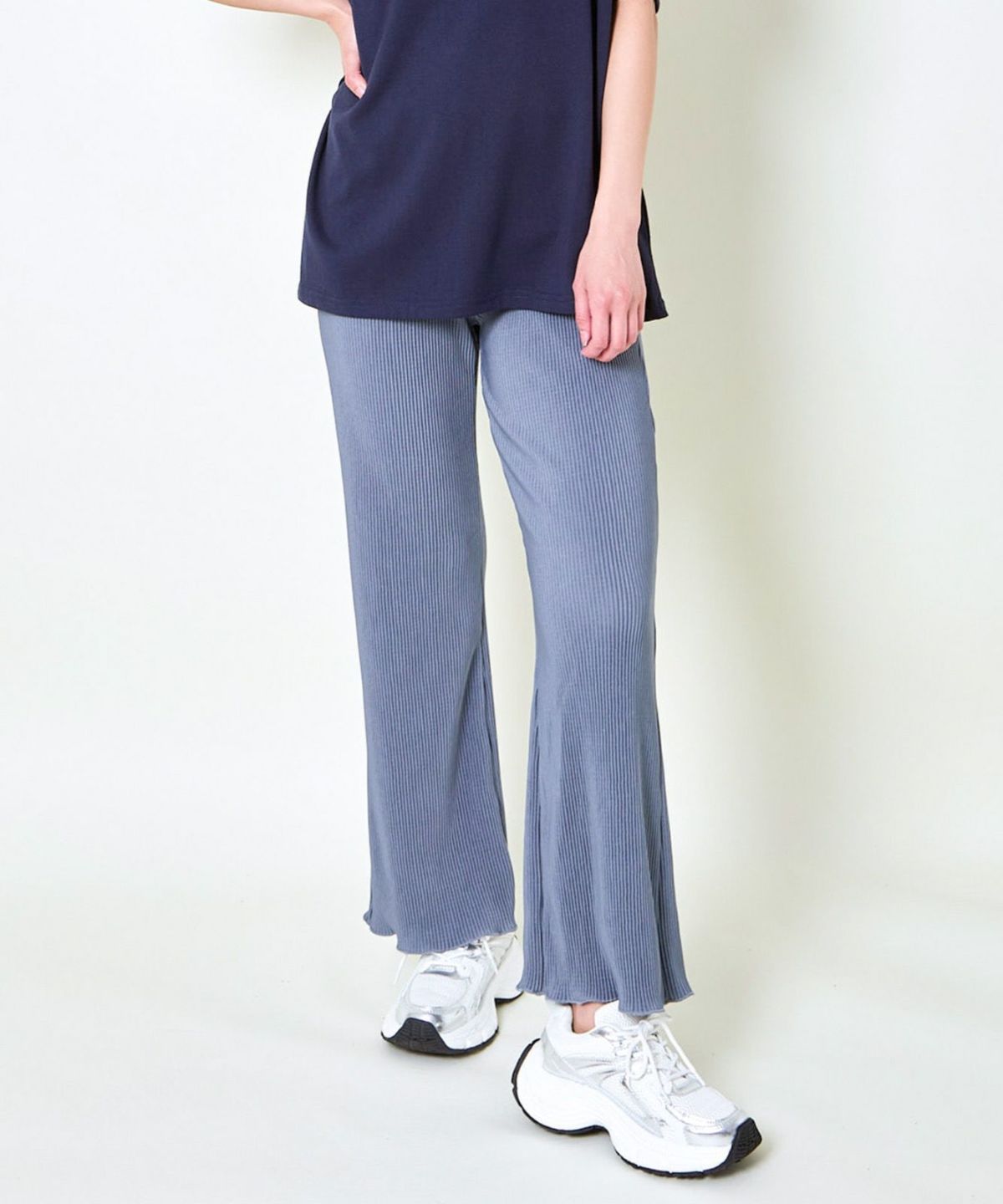 他の画像を見る 《裾メロウ×ストレッチ素材》テレコフレアパンツ/らく映えシルエット 2BUY10%OFF 定価 ¥ 4,389 のところ SALE価格 ¥ 2,194 税込 カートに入れる お気に入りに登録する