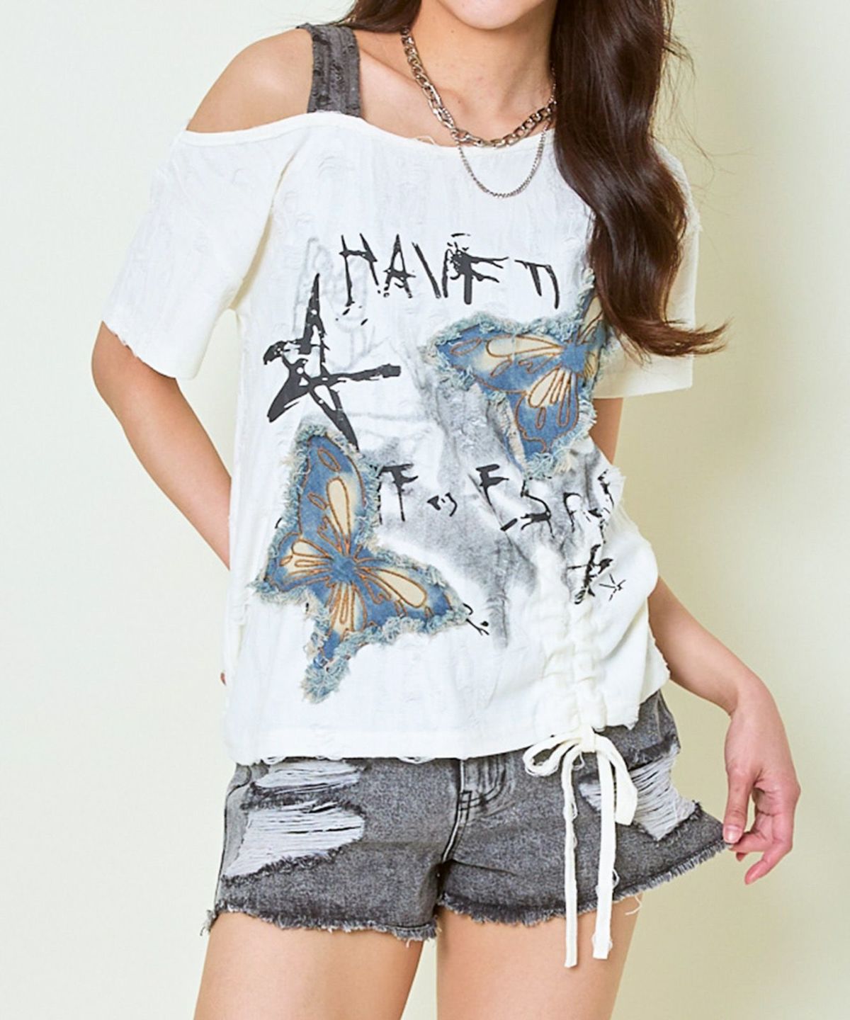 他の画像を見る 《デニム蝶×ワンショル風》クラッシュTシャツ/個性派エモ映え 2BUY10%OFF 定価 ¥ 4,389 のところ SALE価格 ¥ 2,194 税込 カートに入れる お気に入りに登録する