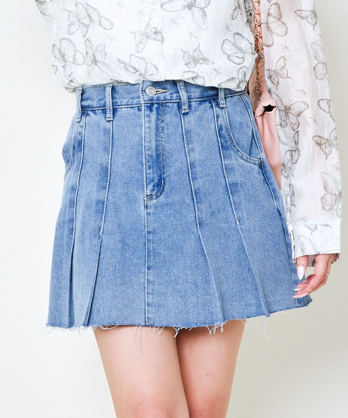 他の画像を見る 《プリーツ×カットオフ裾》レディース デニム ミニスカート トレンド映え 春夏秋 2BUY10%OFF 定価 ¥ 6,039 のところ SALE価格 ¥ 3,019 税込 カートに入れる お気に入りに登録する