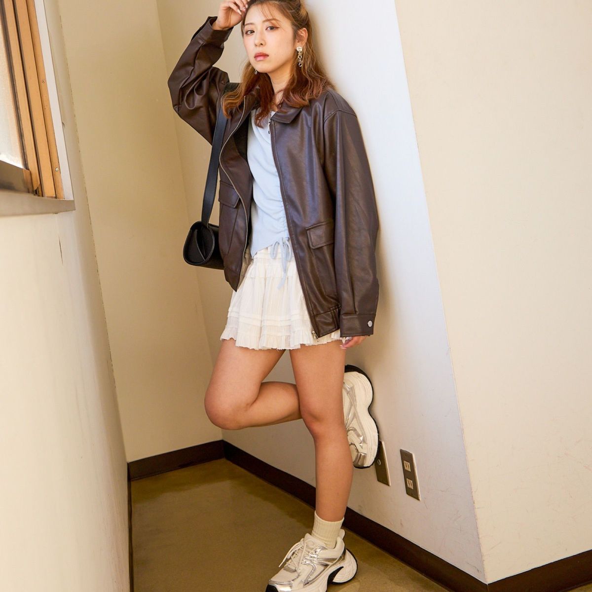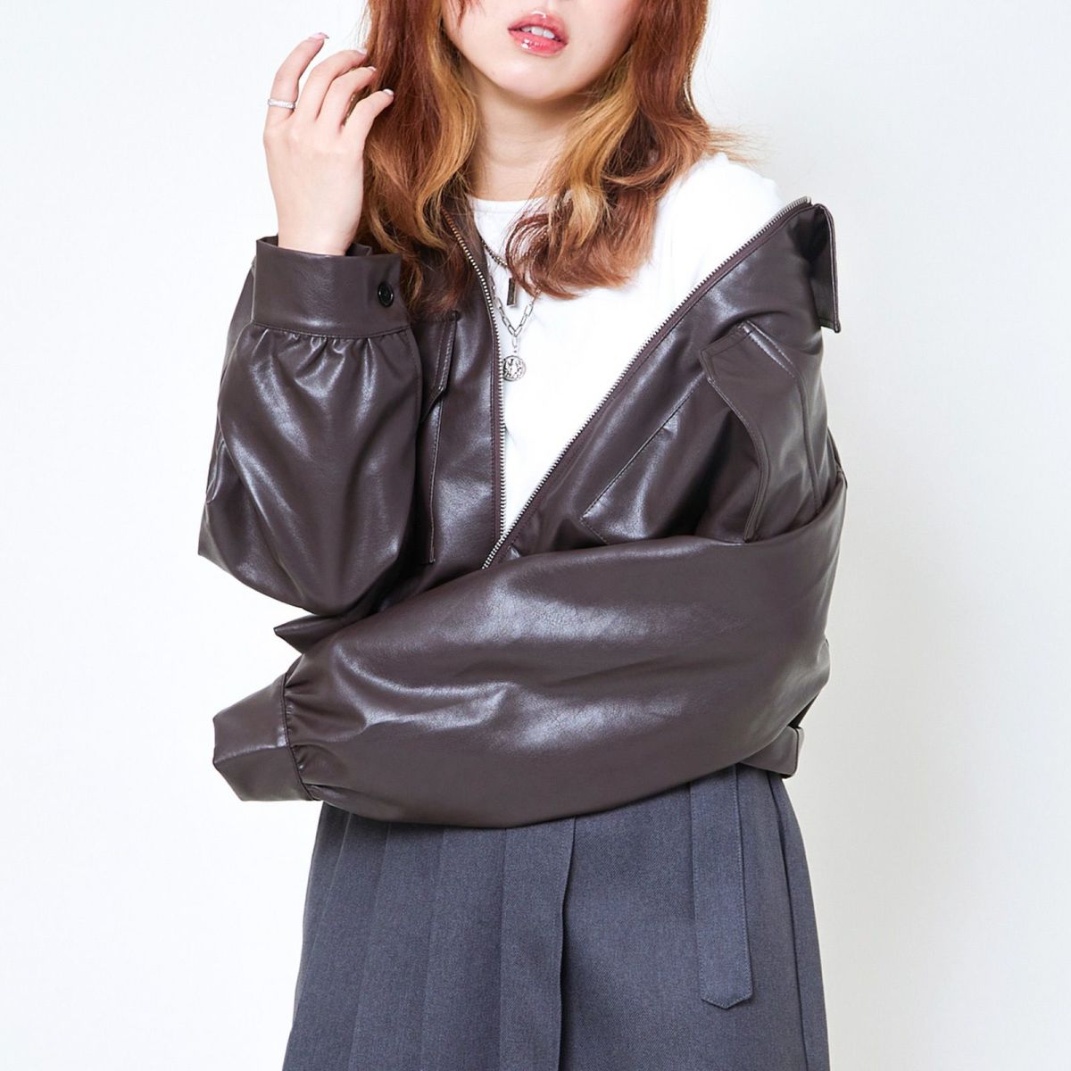 他の画像を見る 《フェイクレザー×ショート丈》レディース ブルゾン 合皮ジャケット ストリート 春秋冬 2BUY10%OFF 定価 ¥ 8,789 のところ SALE価格 ¥ 4,394 税込 カートに入れる お気に入りに登録する
