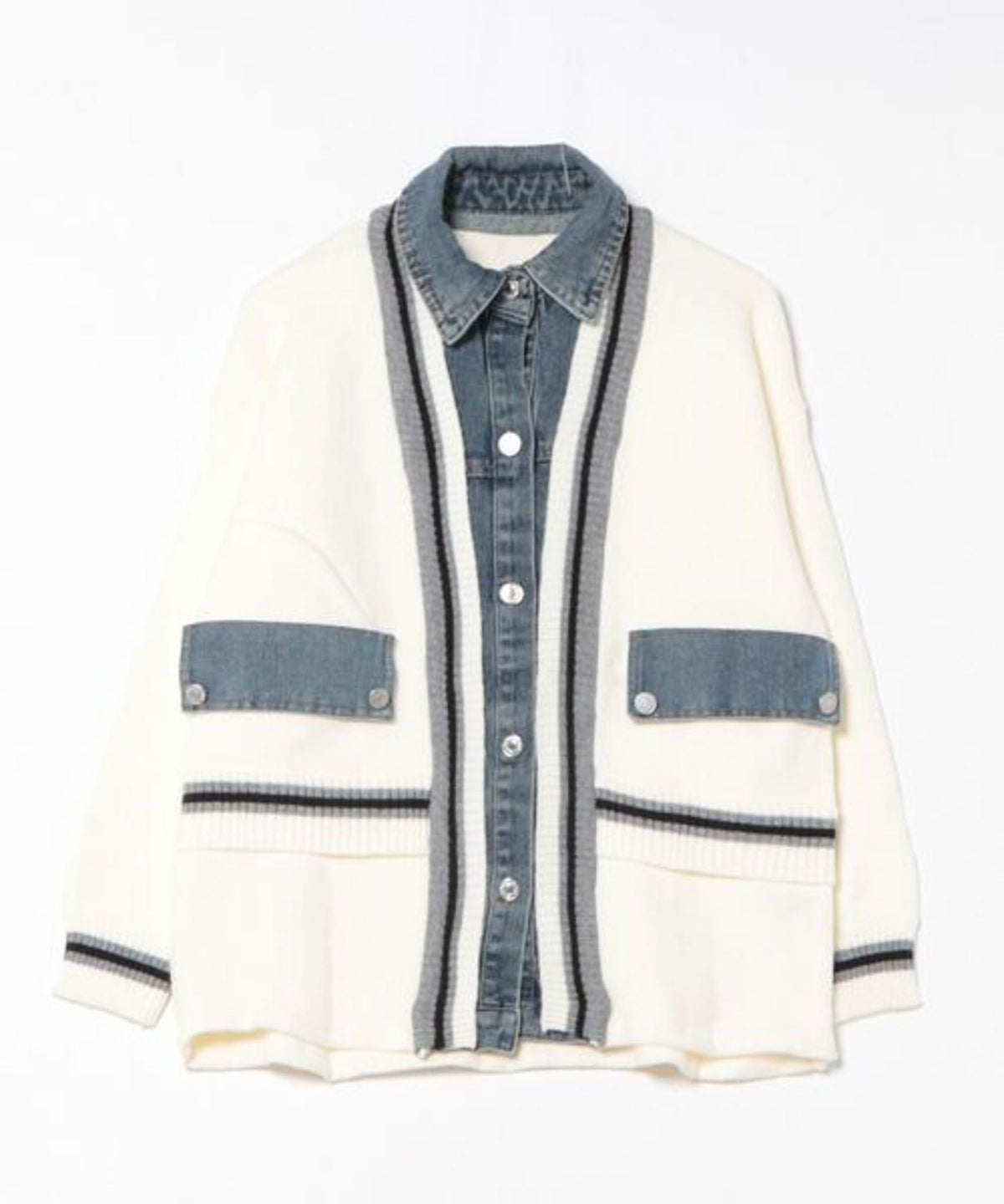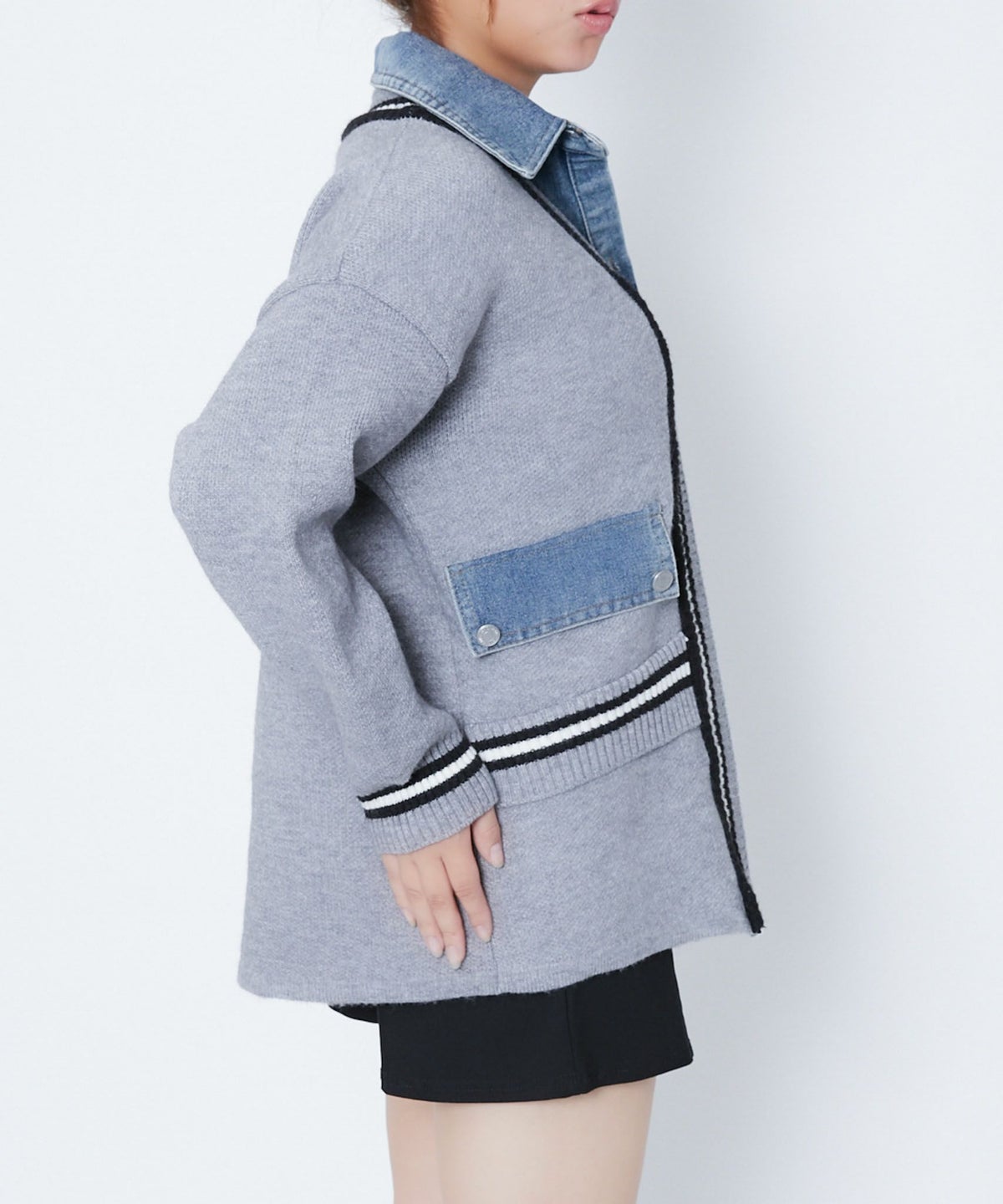他の画像を見る 《ライン切替×デニムコンビ》カジュアル ニットジャケット ブルゾン風アウター 秋冬 SALE 通常価格 ¥ 7,139 のところ 販売価格 ¥ 2,189 税込 在庫切れ カートに入れる お気に入りに登録する
