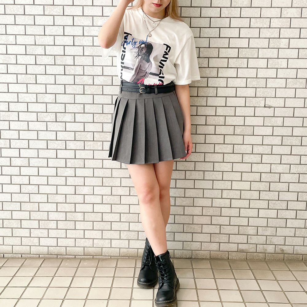 ベルト付きタックミニスカート