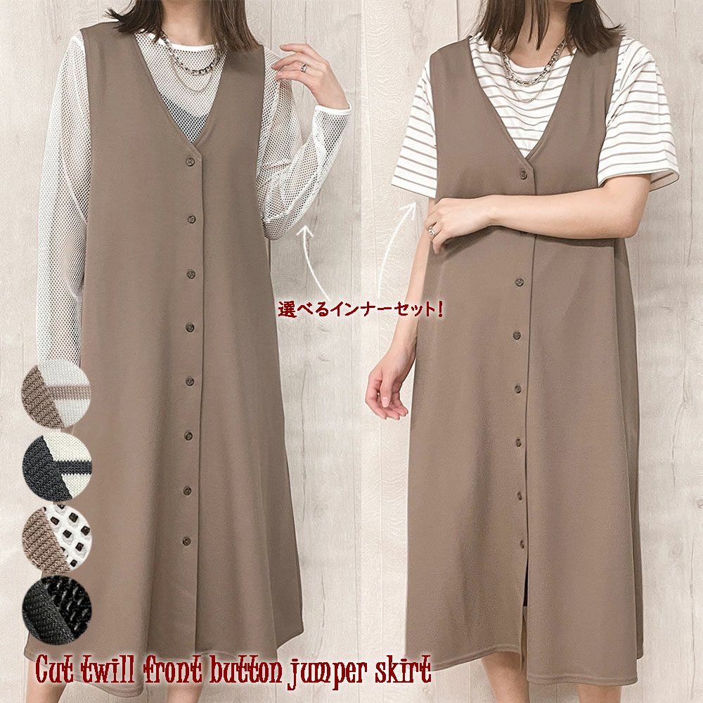 カットツイル前ボタンジャンパースカート