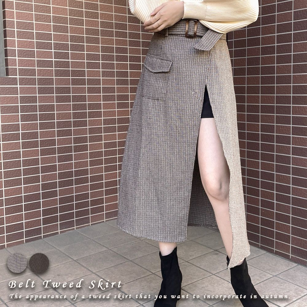 ベルト付きツイードスカート
