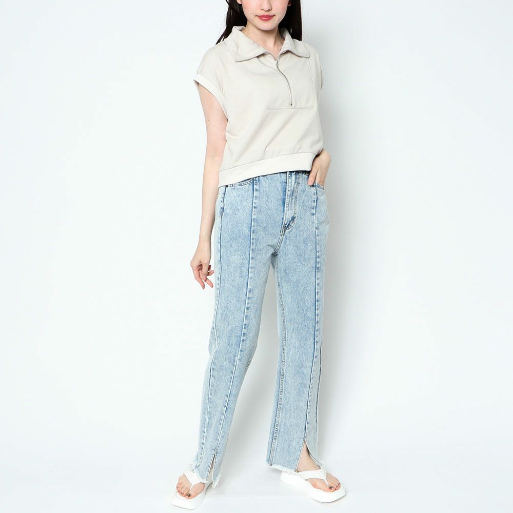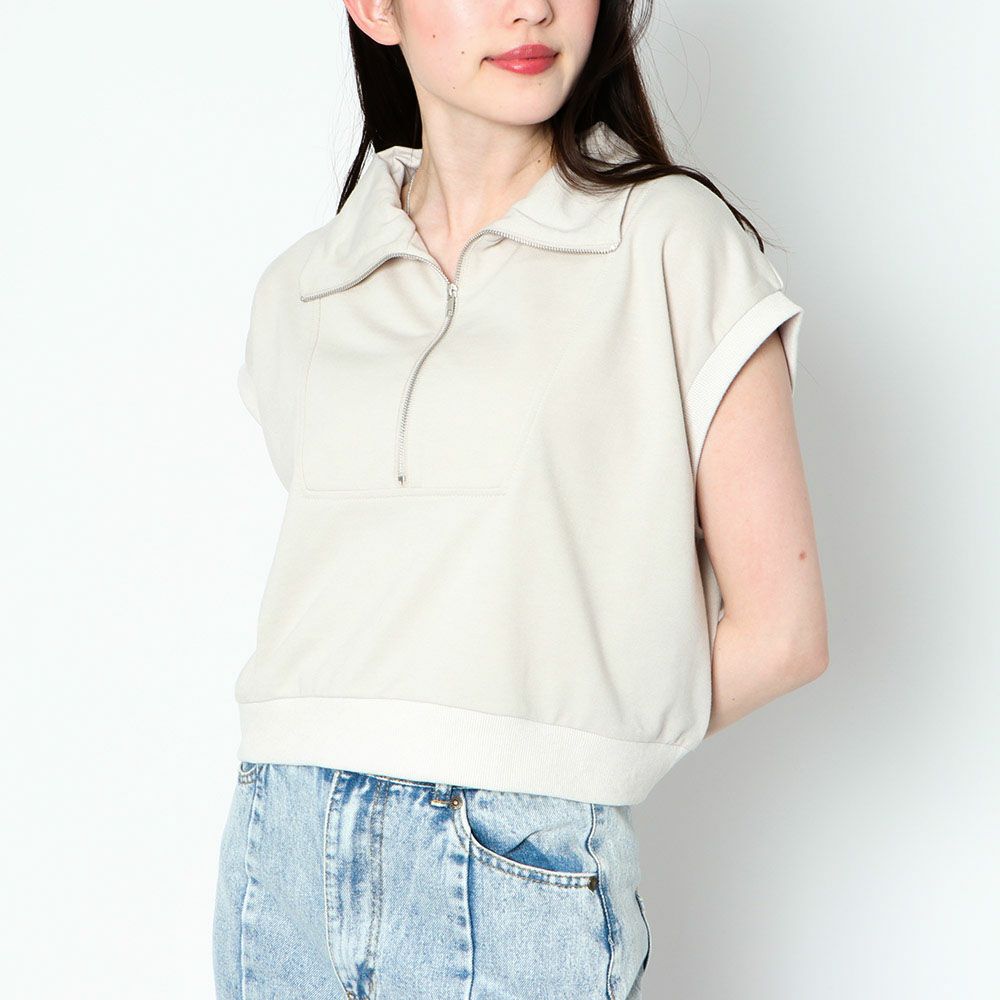 フレンチスリーブハーフZIPプルオーバー