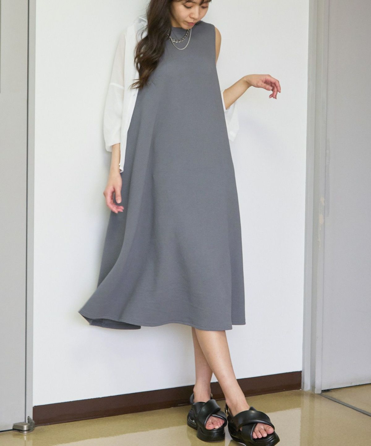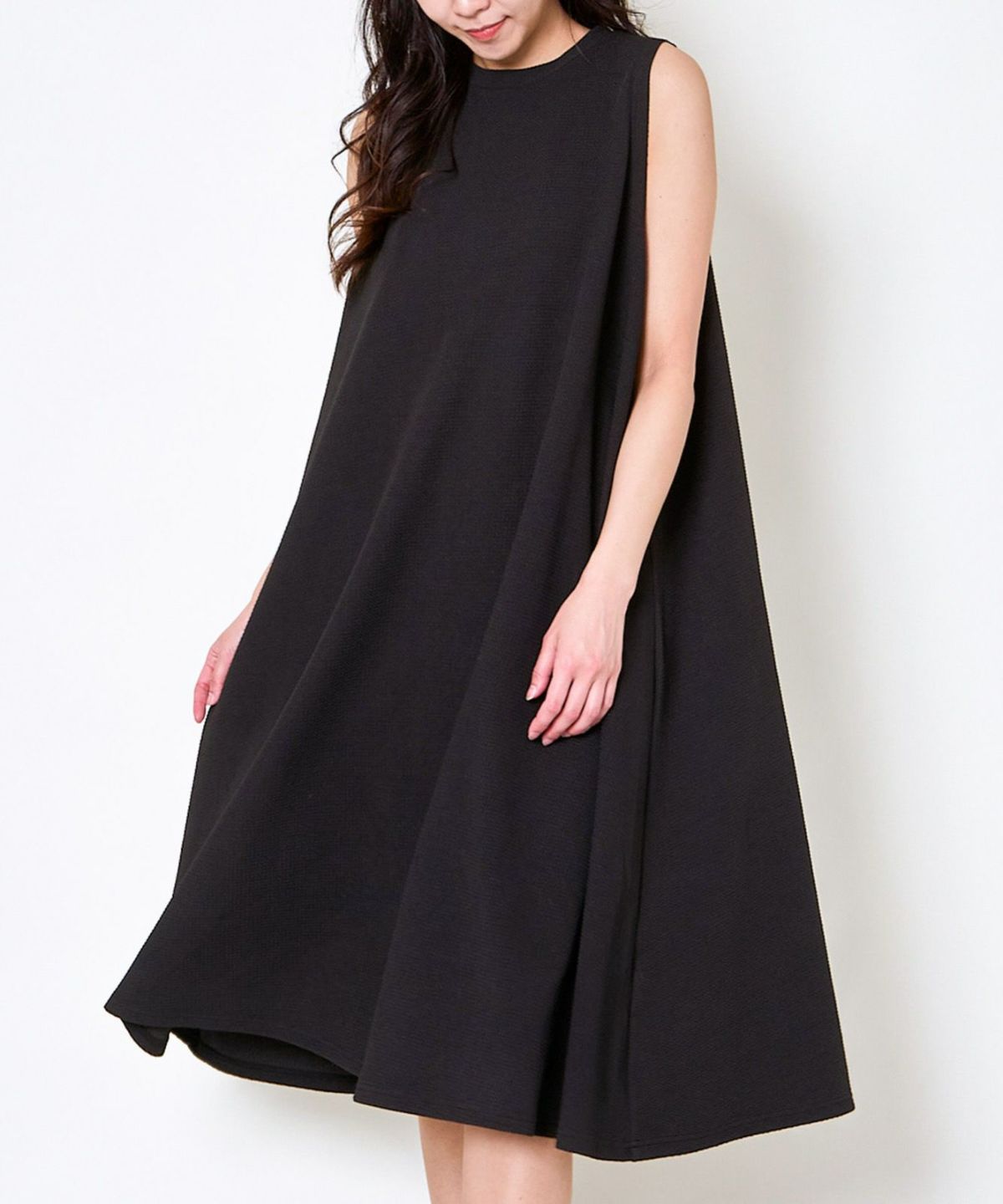 《楽ちんAライン》ノースリーブワンピース/体型カバー×フレアシルエット