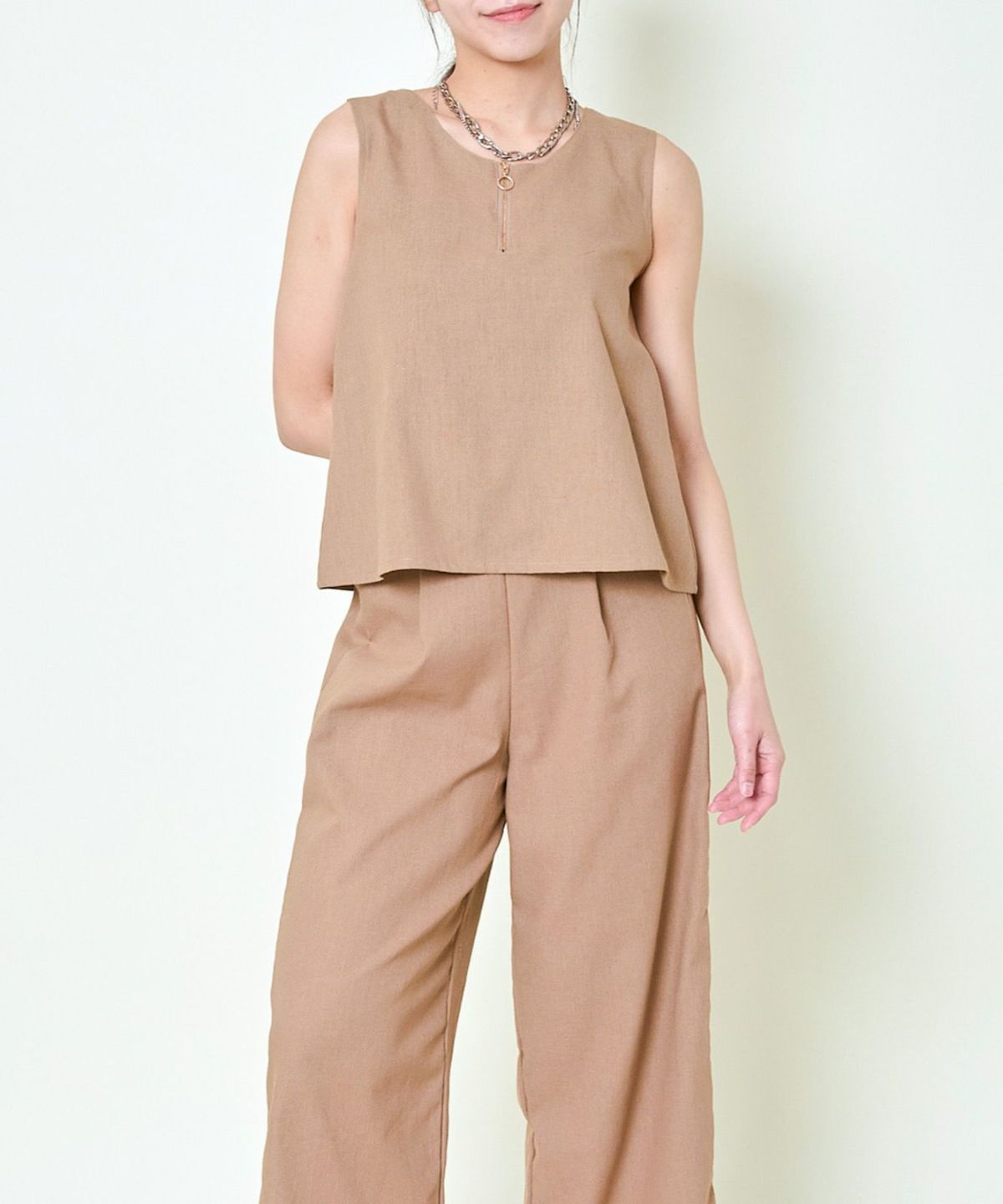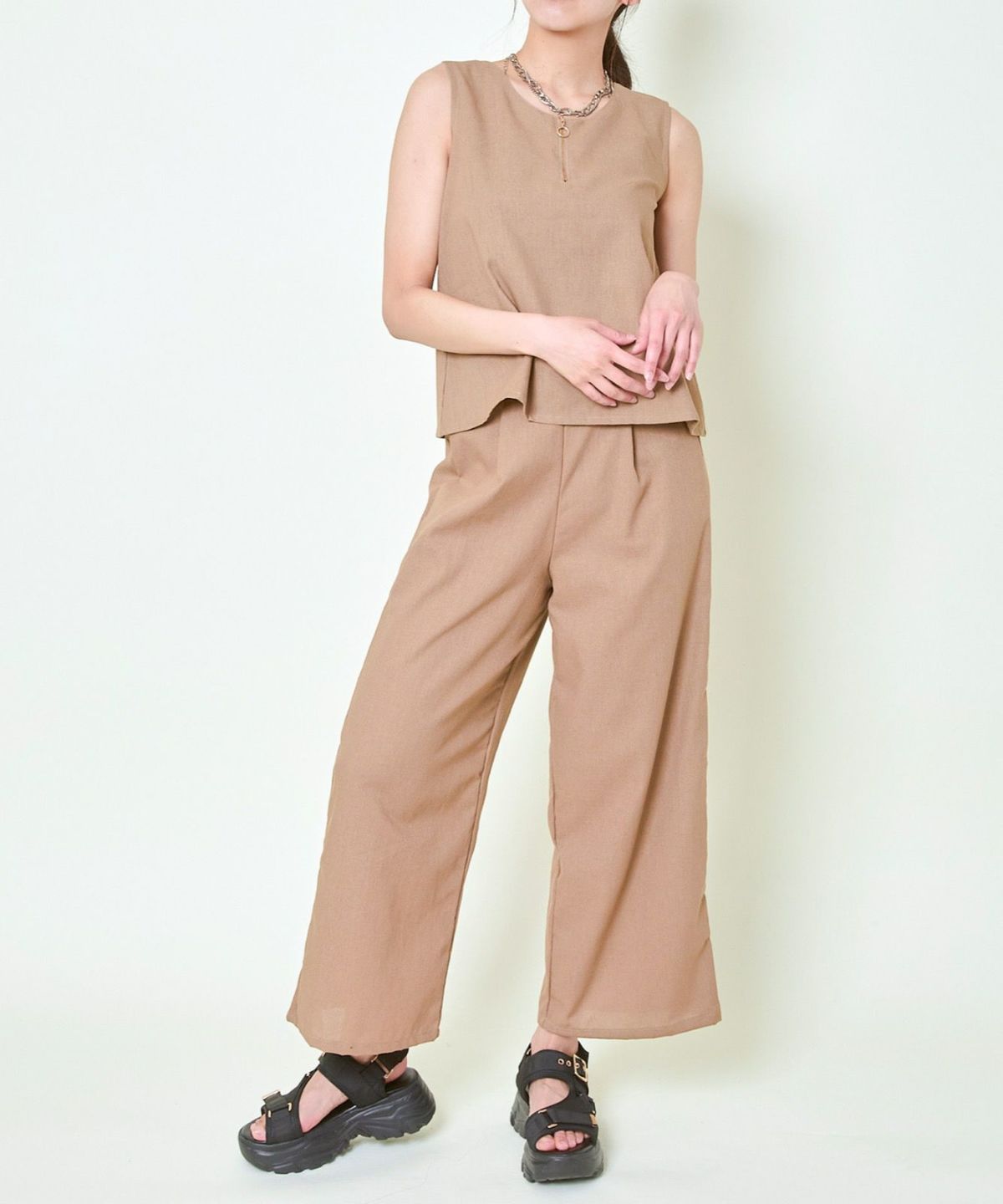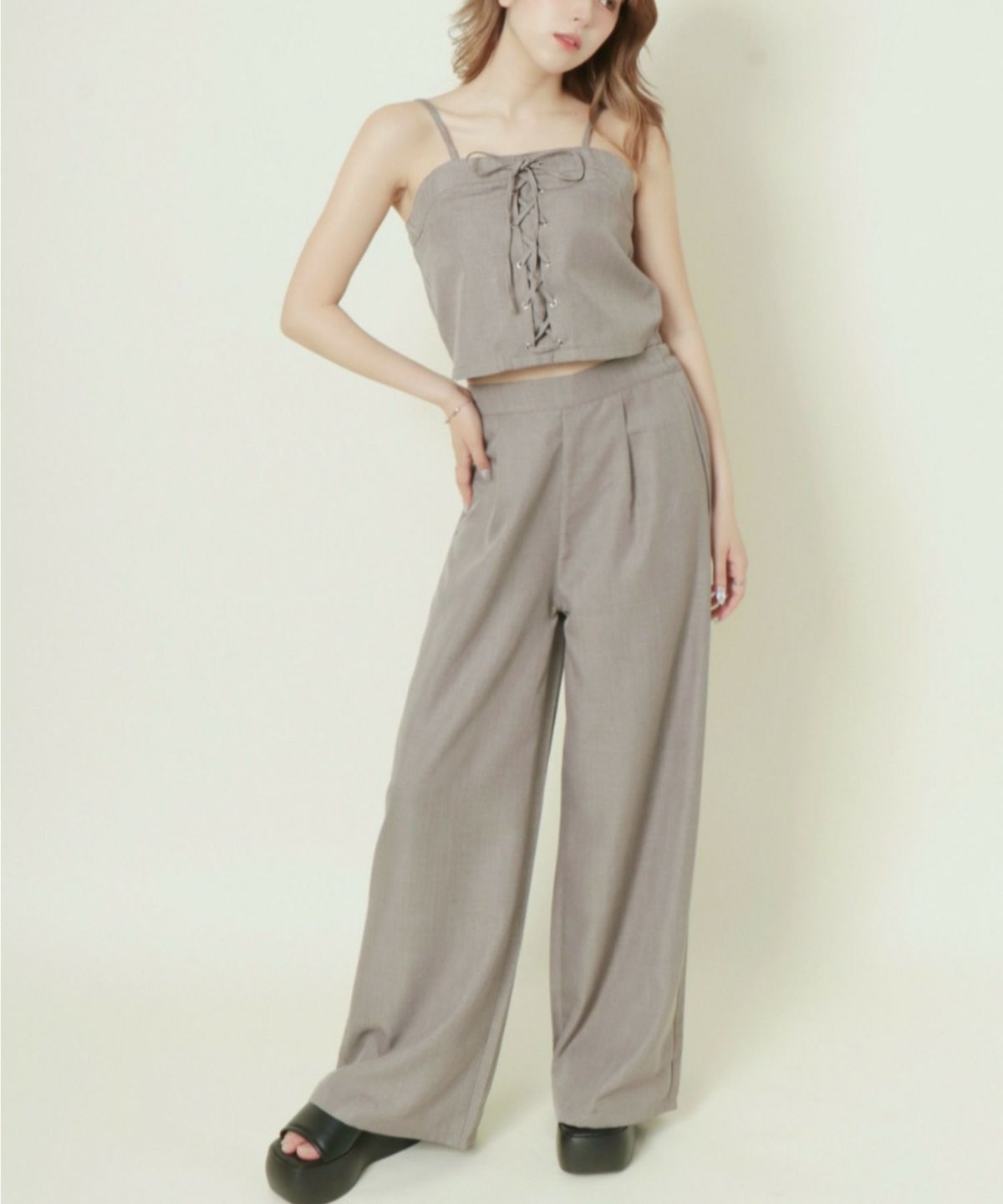 《スエード調×レースアップ》レディース キャミソール+ワイドパンツ 2点セットアップ オールシーズン