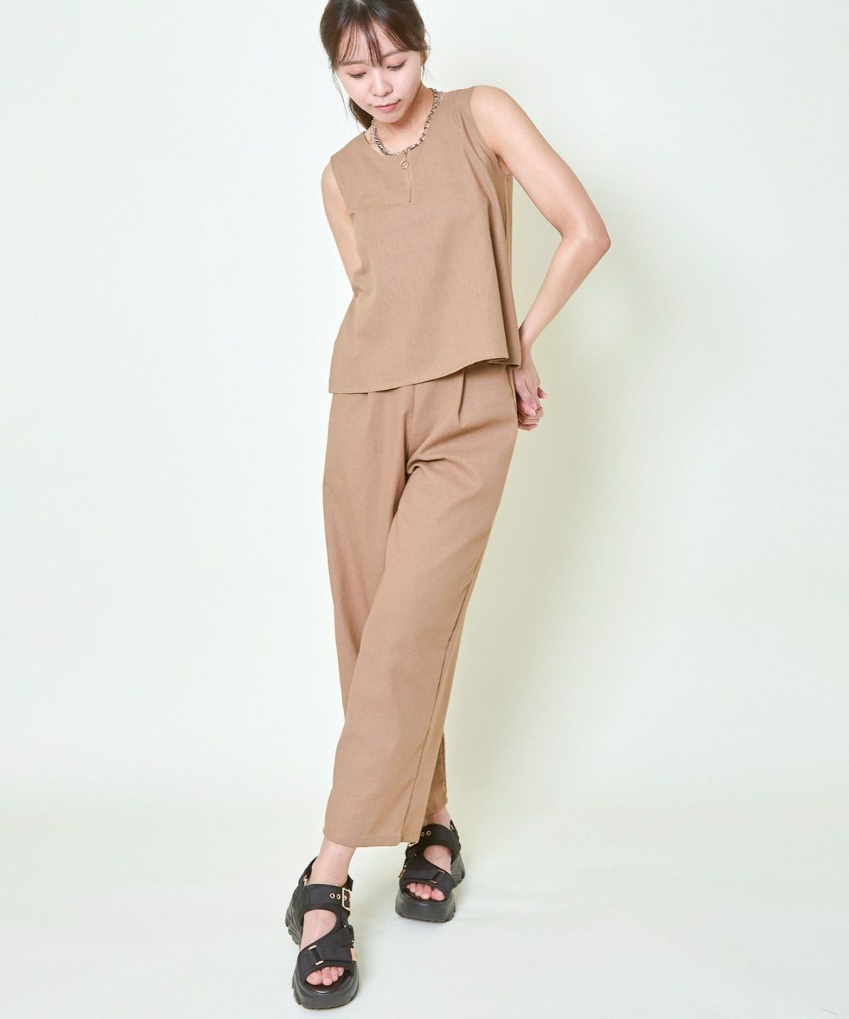 《ワッシャー×楽ちん映え》キャミ&パンツセットアップ