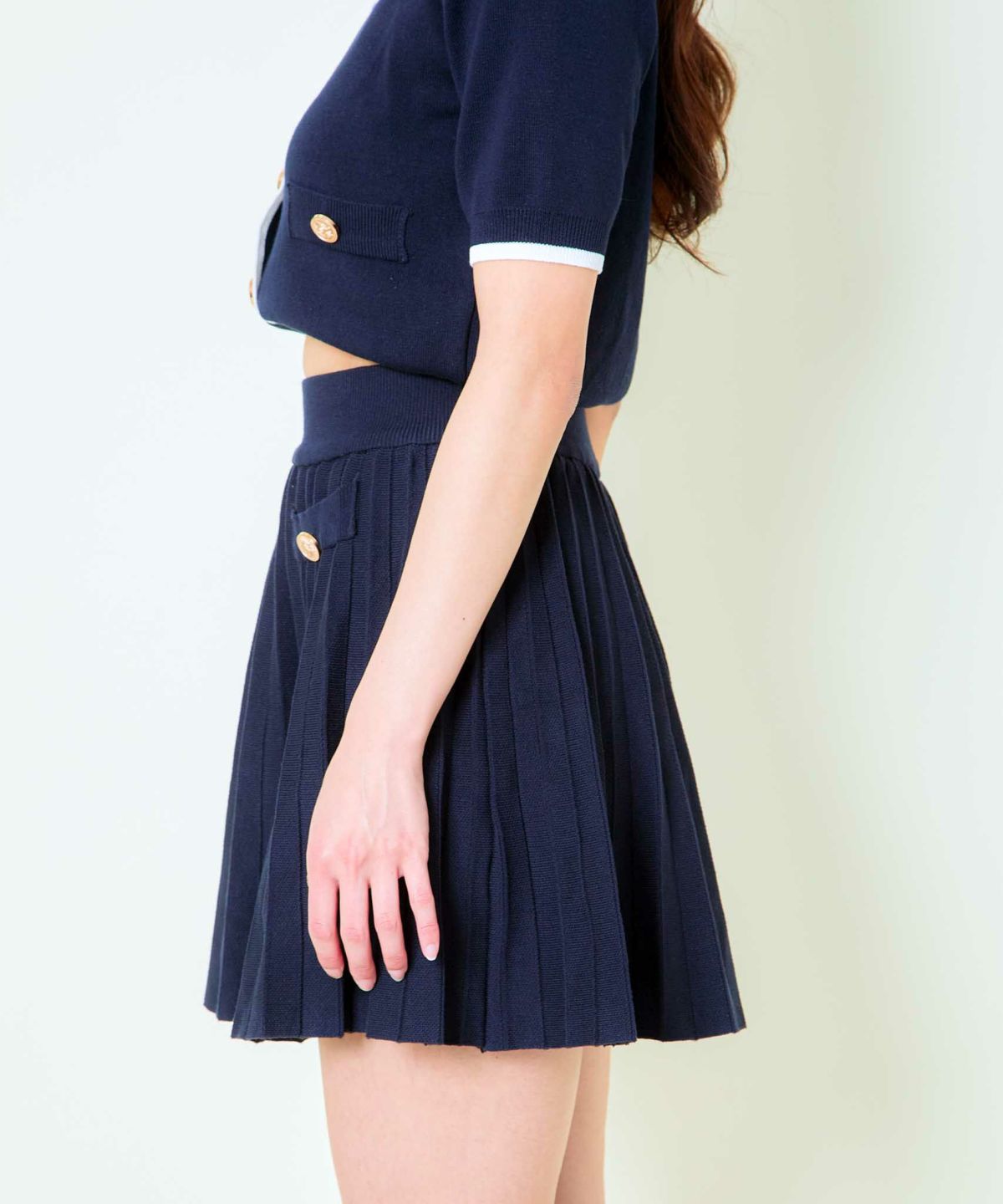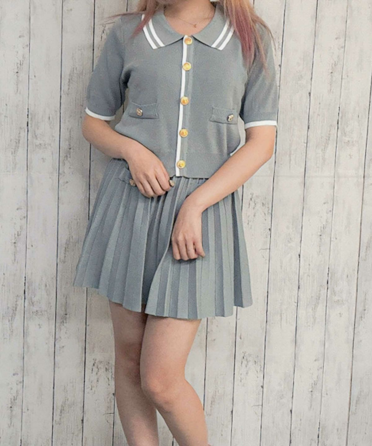 《2点セットで着映え》レディース 金ボタンニット×プリーツスカートSETUP 春夏秋
