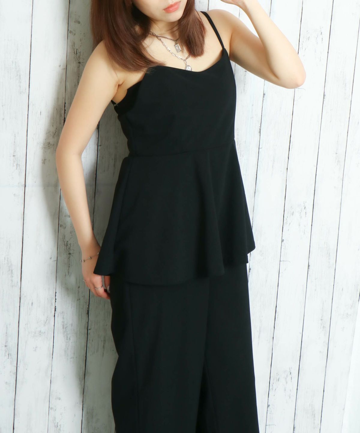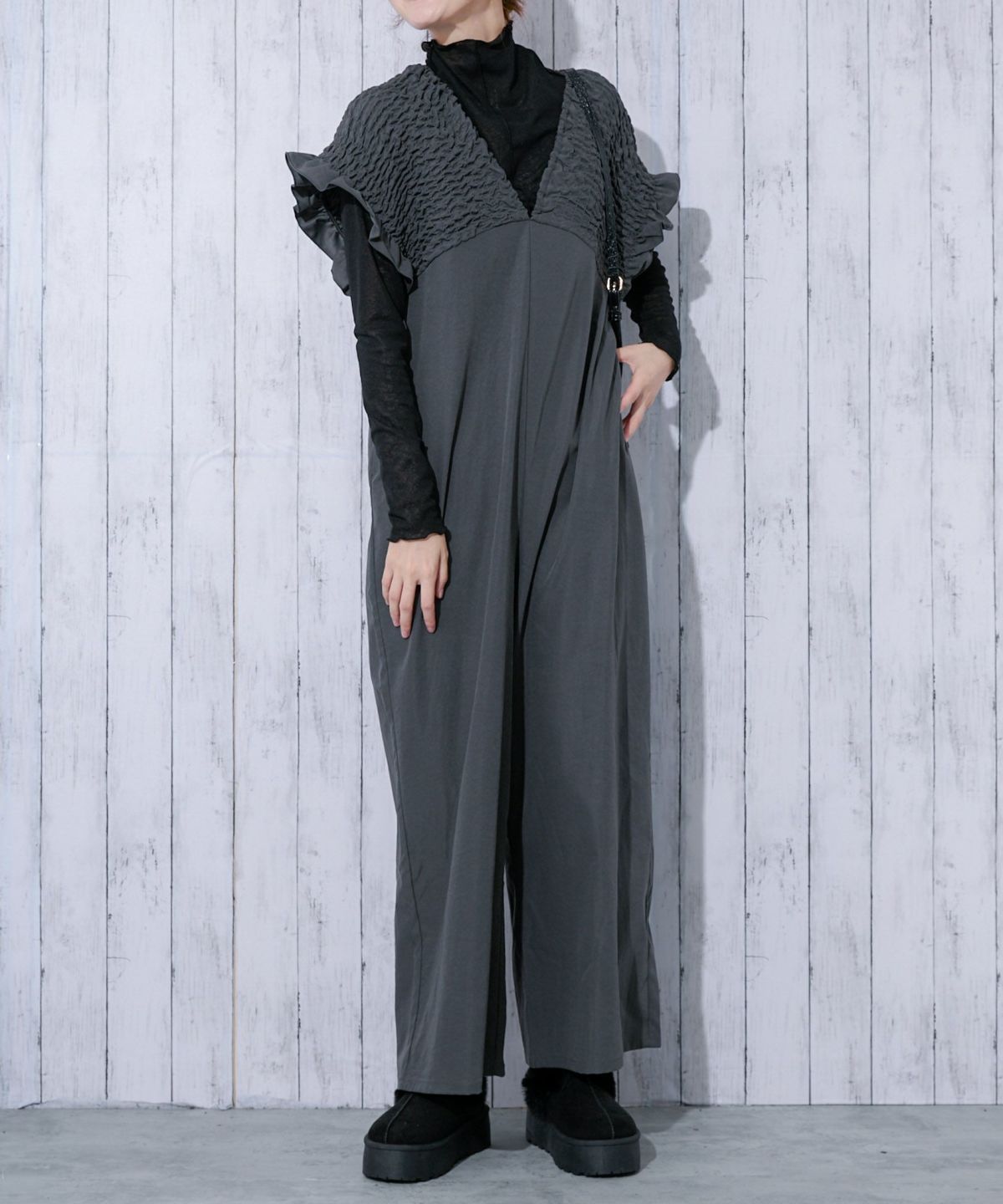 《レイヤード見え×美シルエット》ドッキング風オールインワン