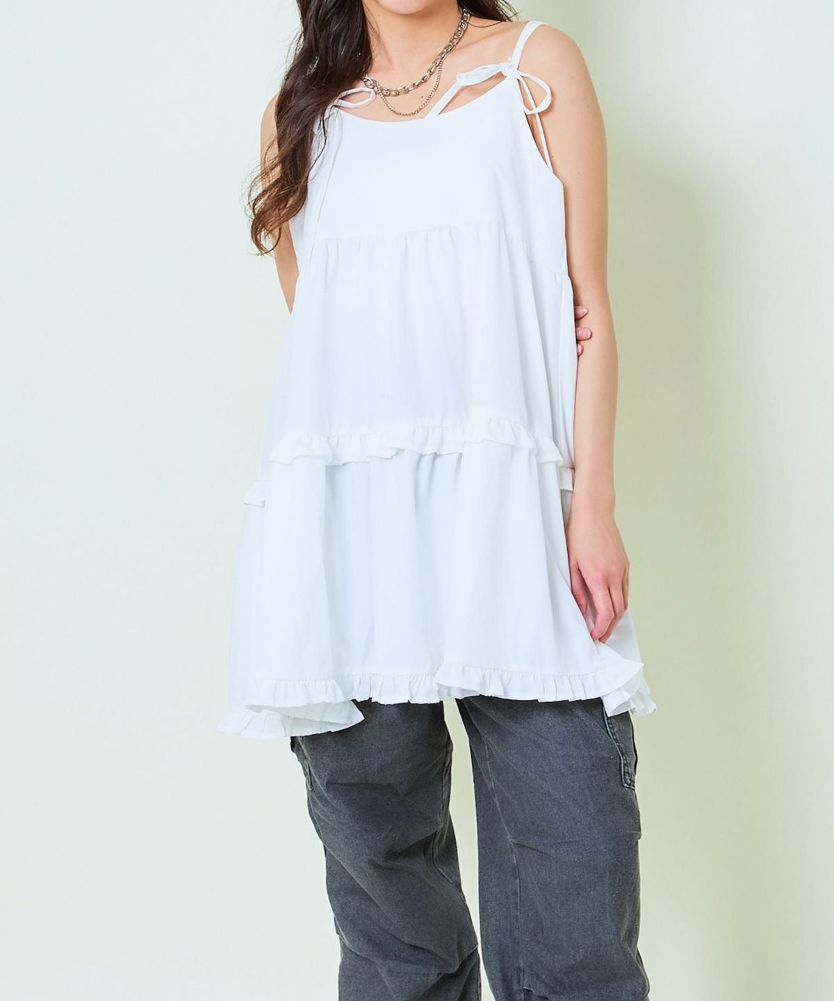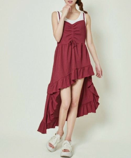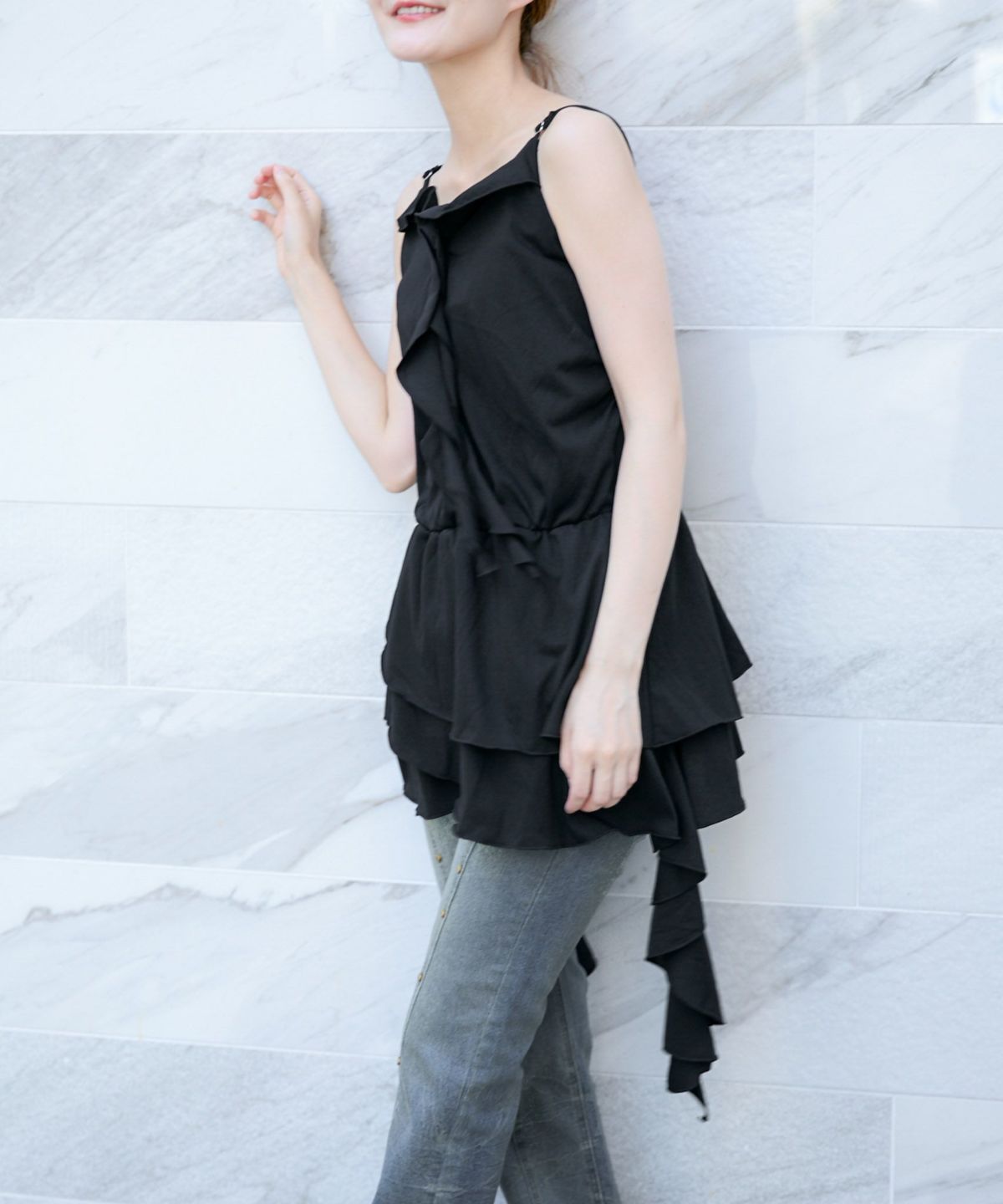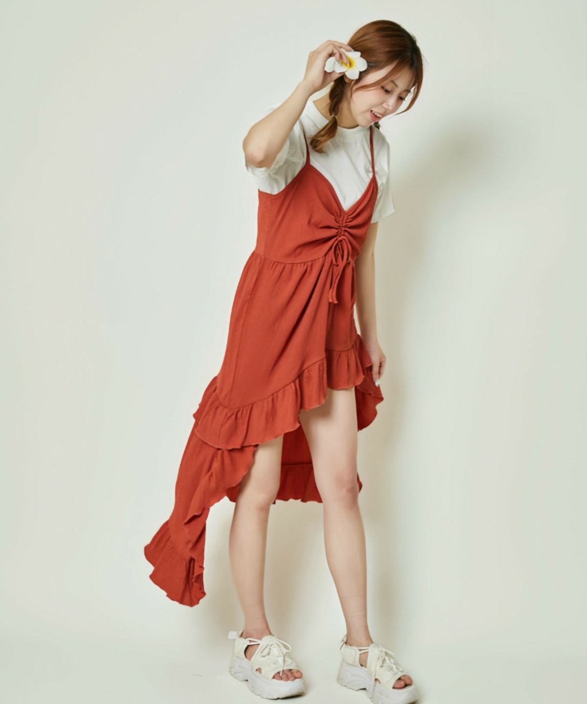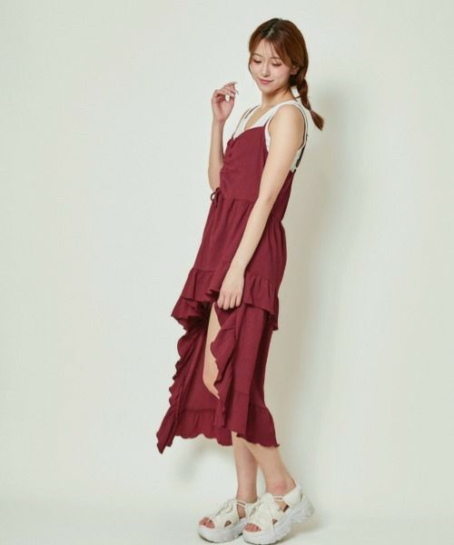 《前後アシメ×ひらひらフリル》キャミワンピ/動きが映える旬バランス
