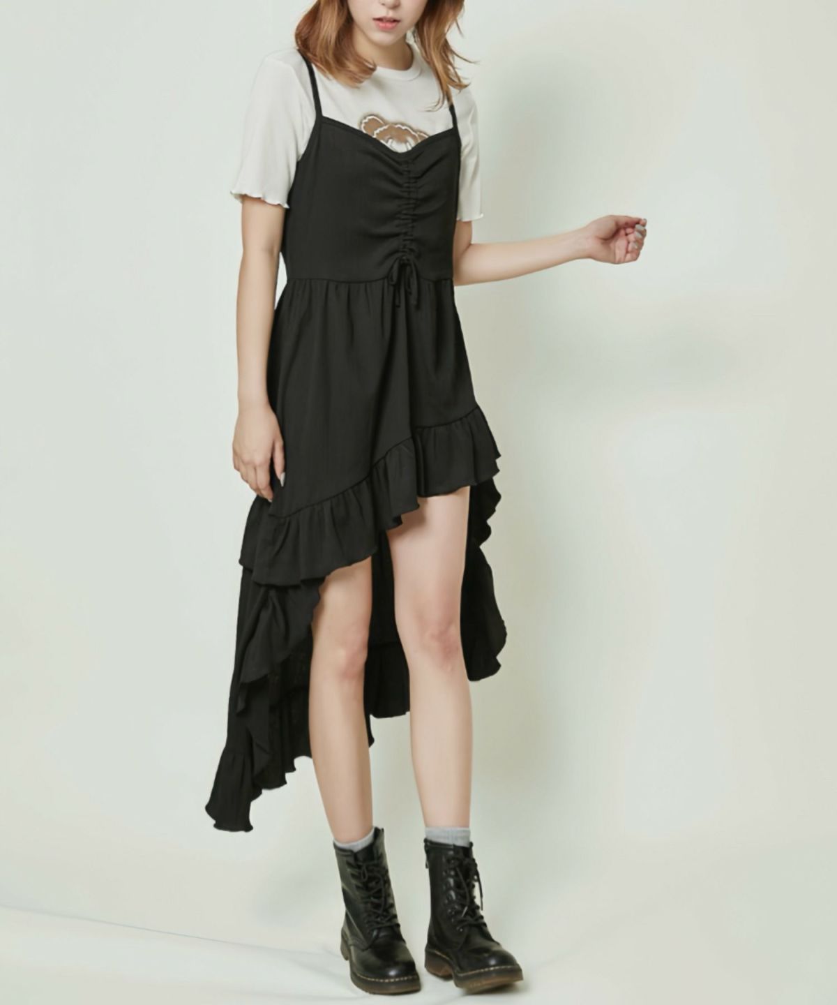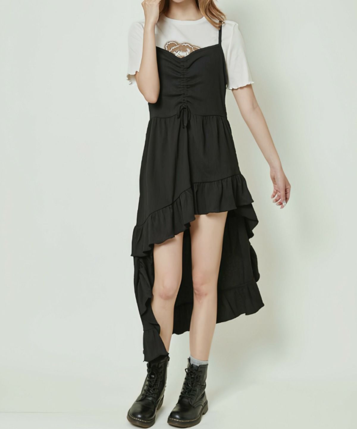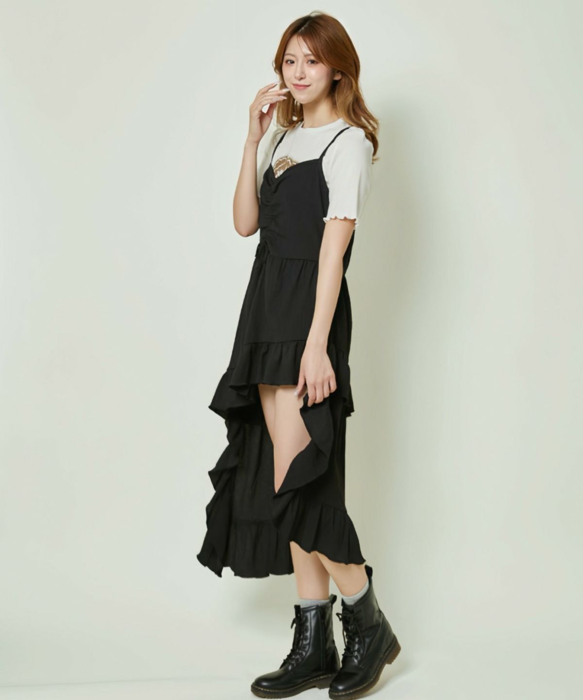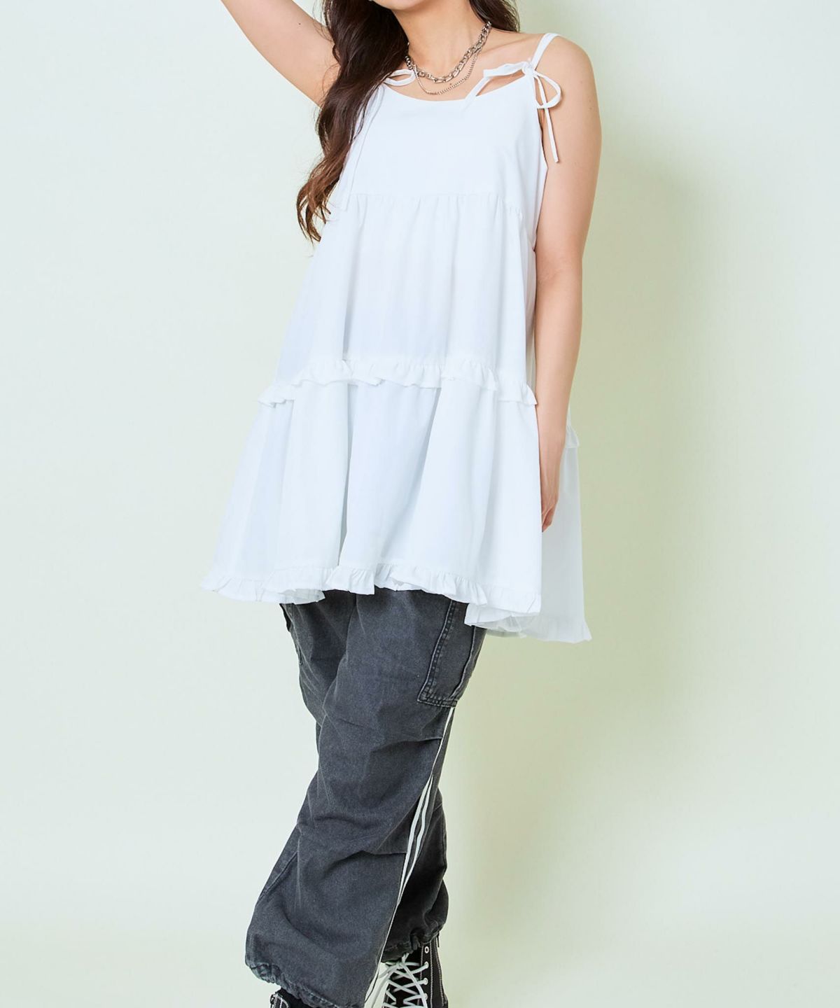 《前後アシメ×ひらひらフリル》キャミワンピ/動きが映える旬バランス