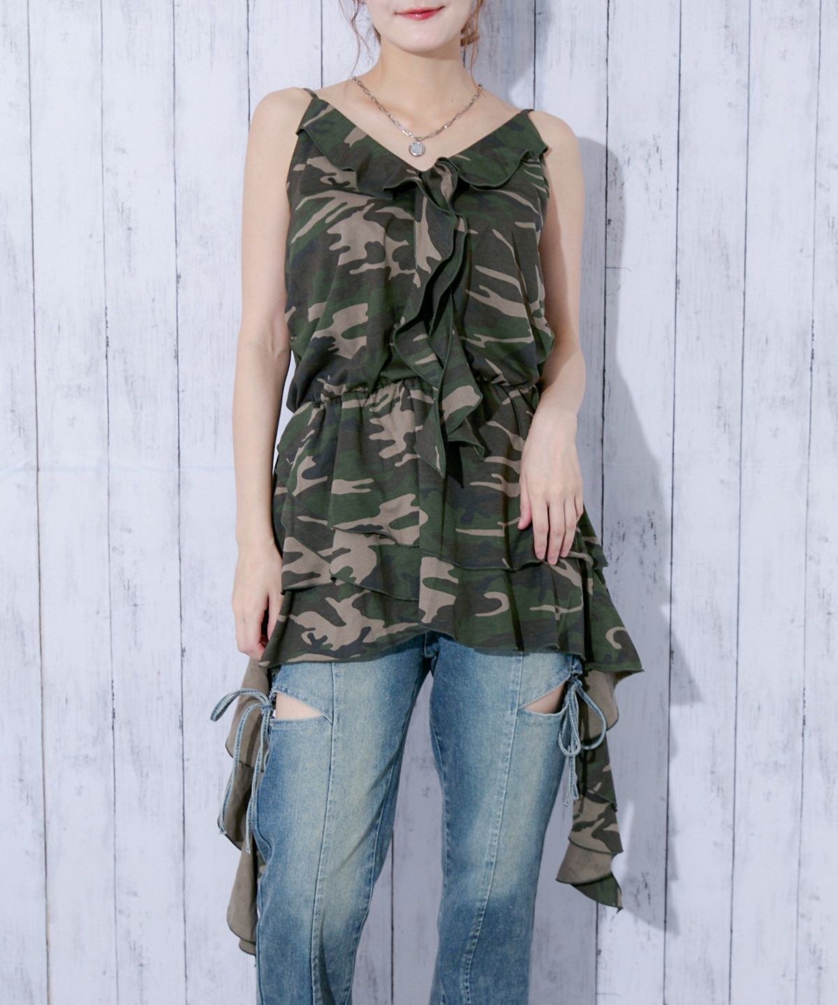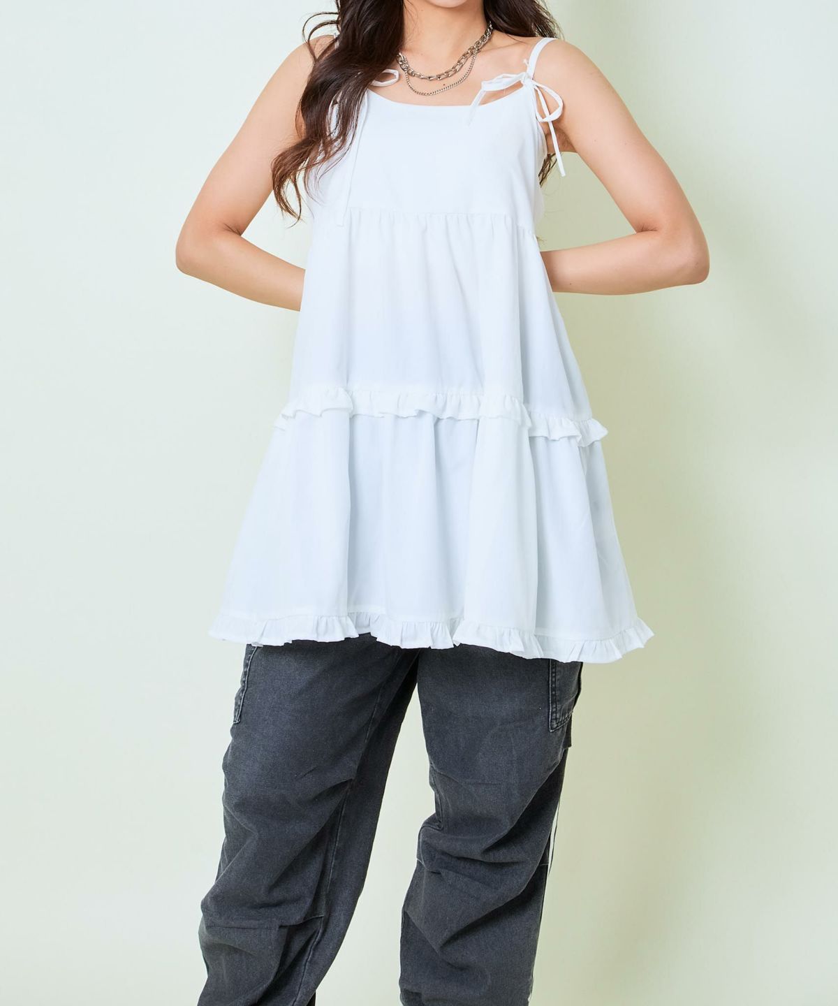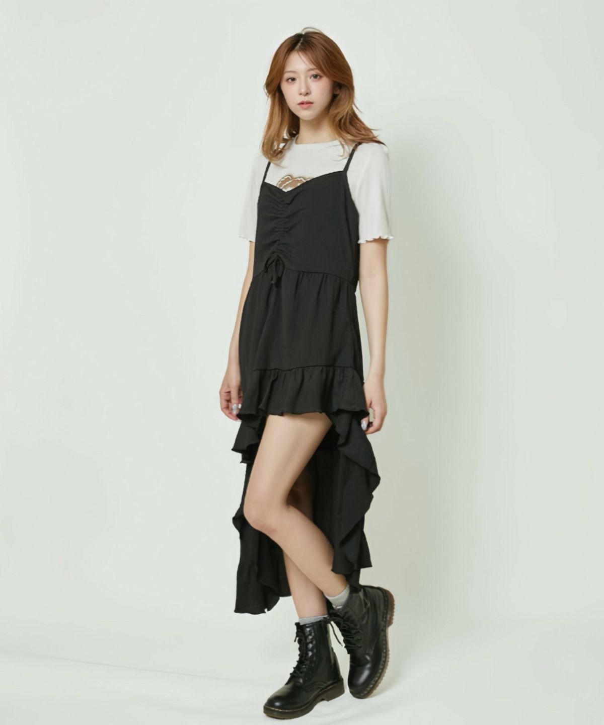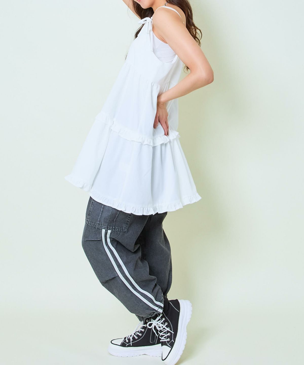 《前後アシメ×ひらひらフリル》キャミワンピ/動きが映える旬バランス