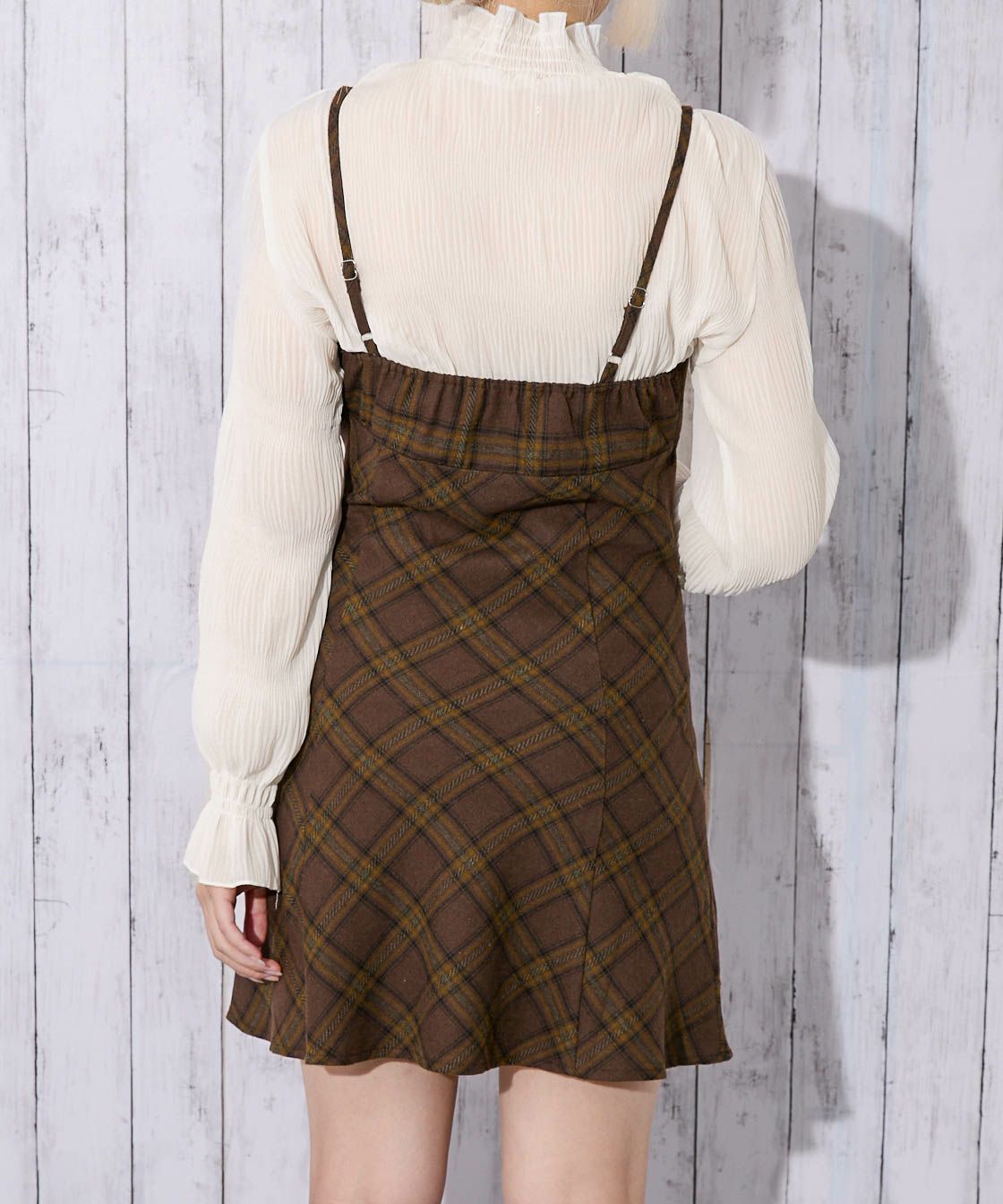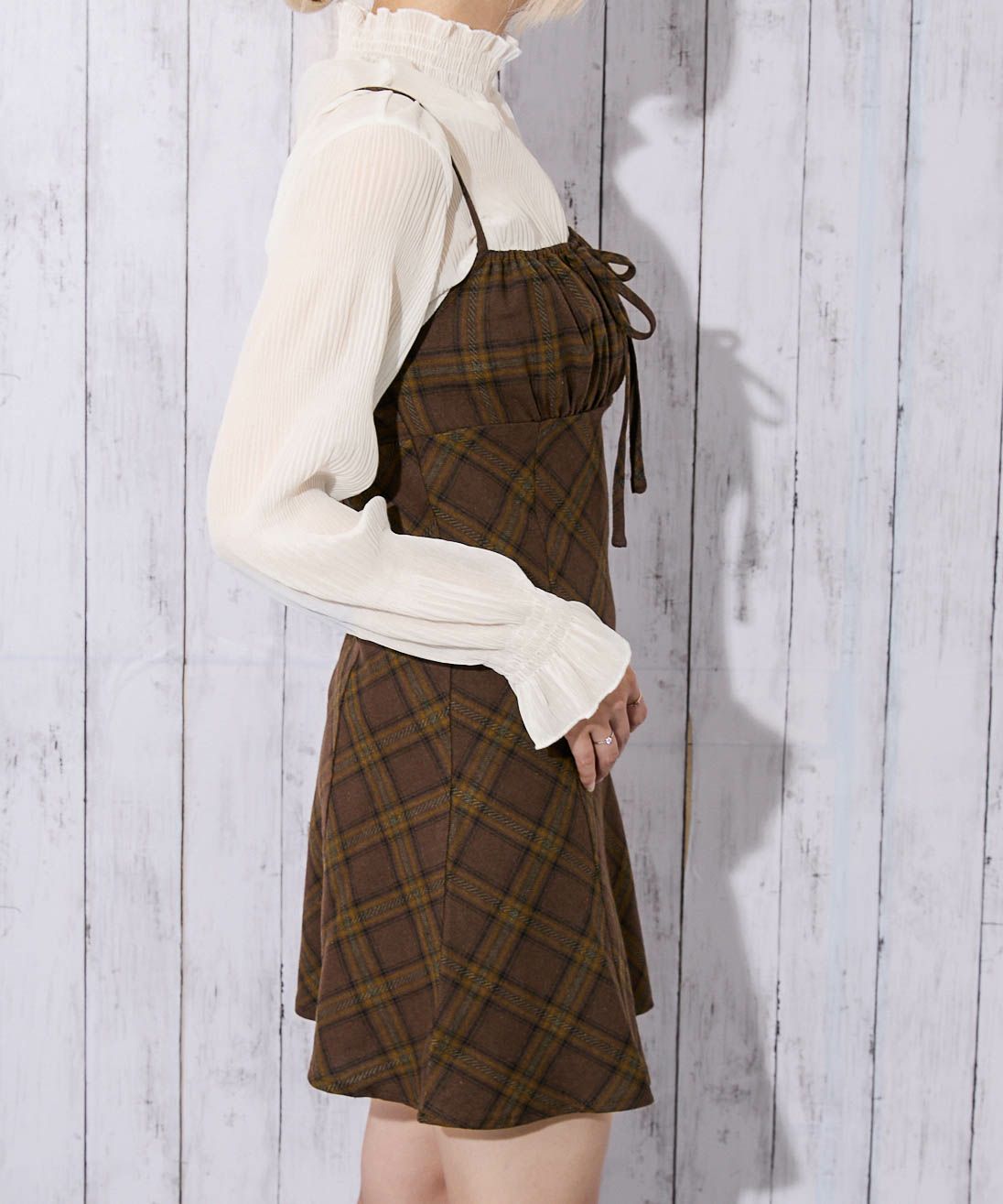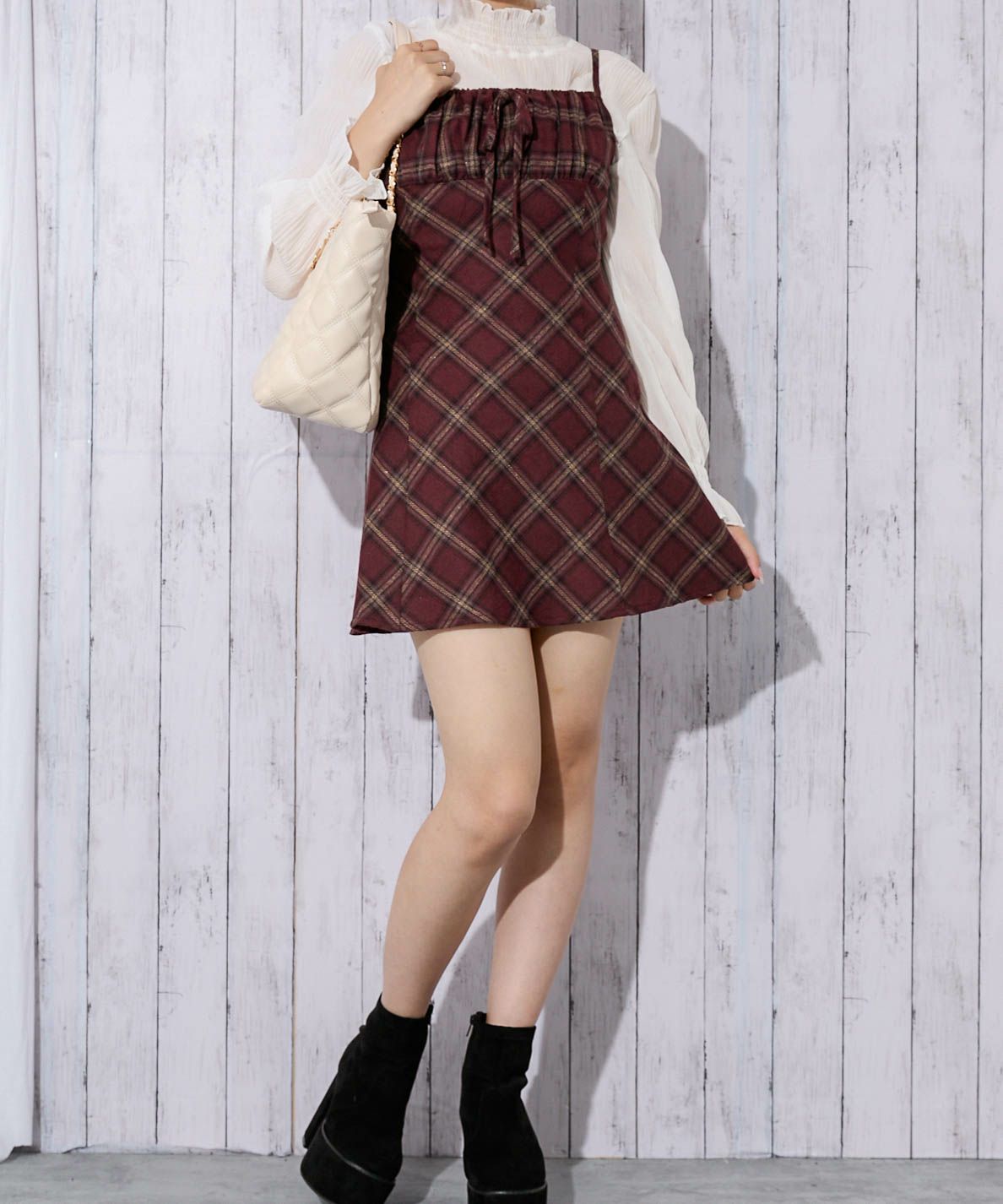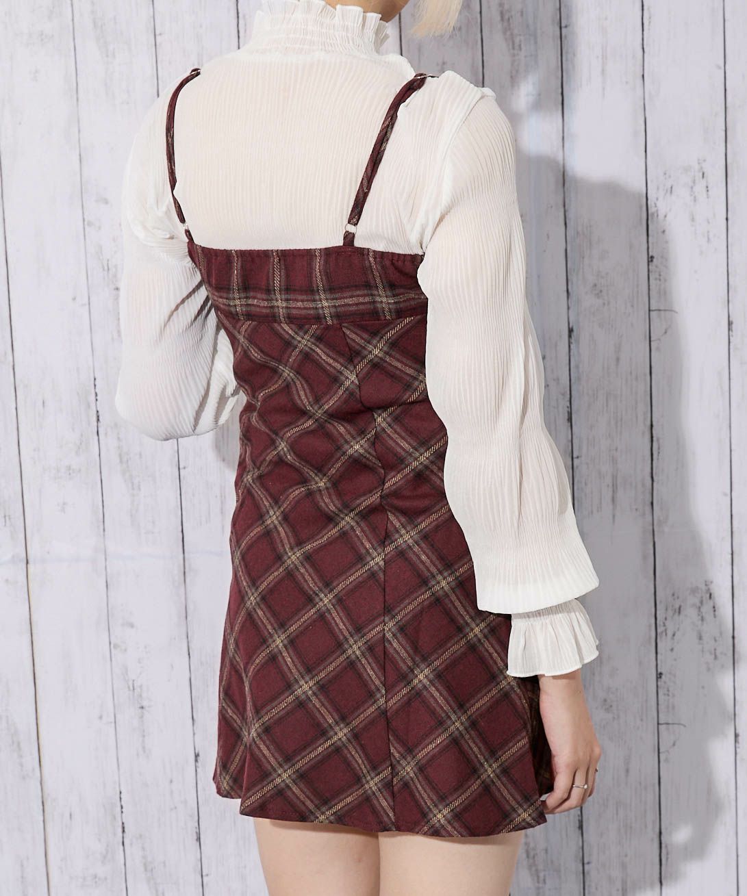 《起毛チェック柄》レディース キャミワンピ チュニック レイヤード 秋冬