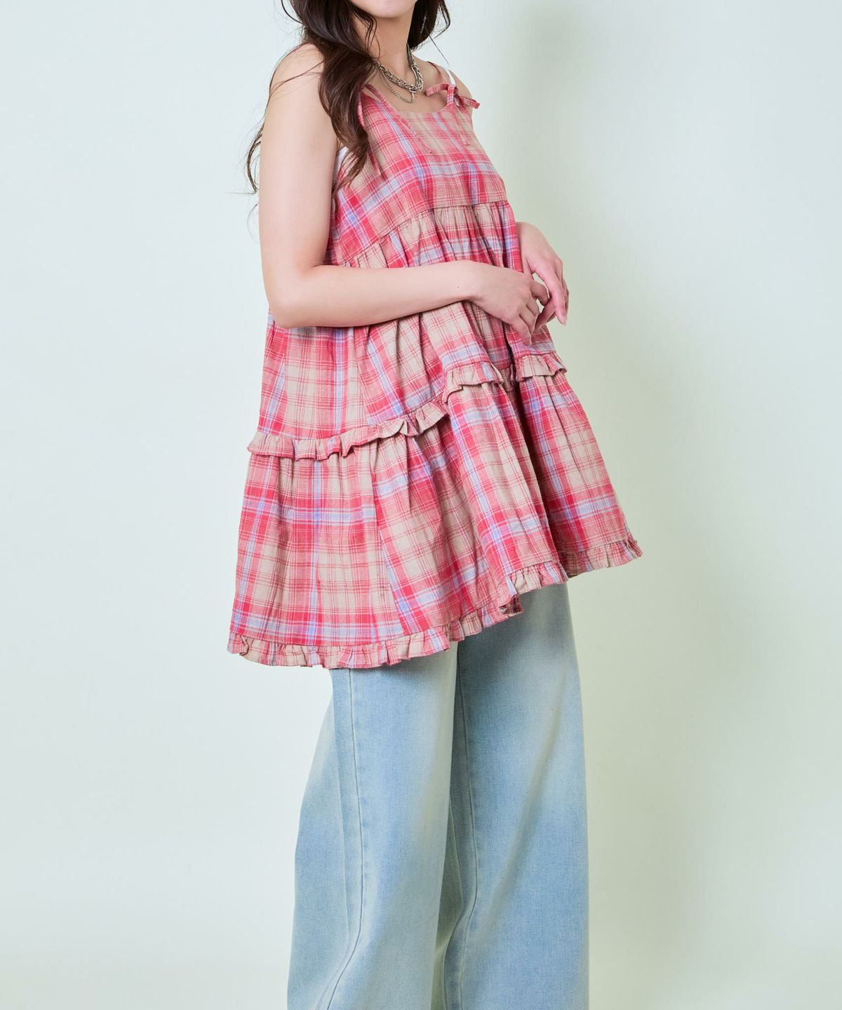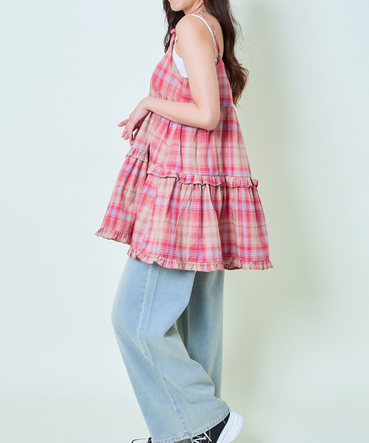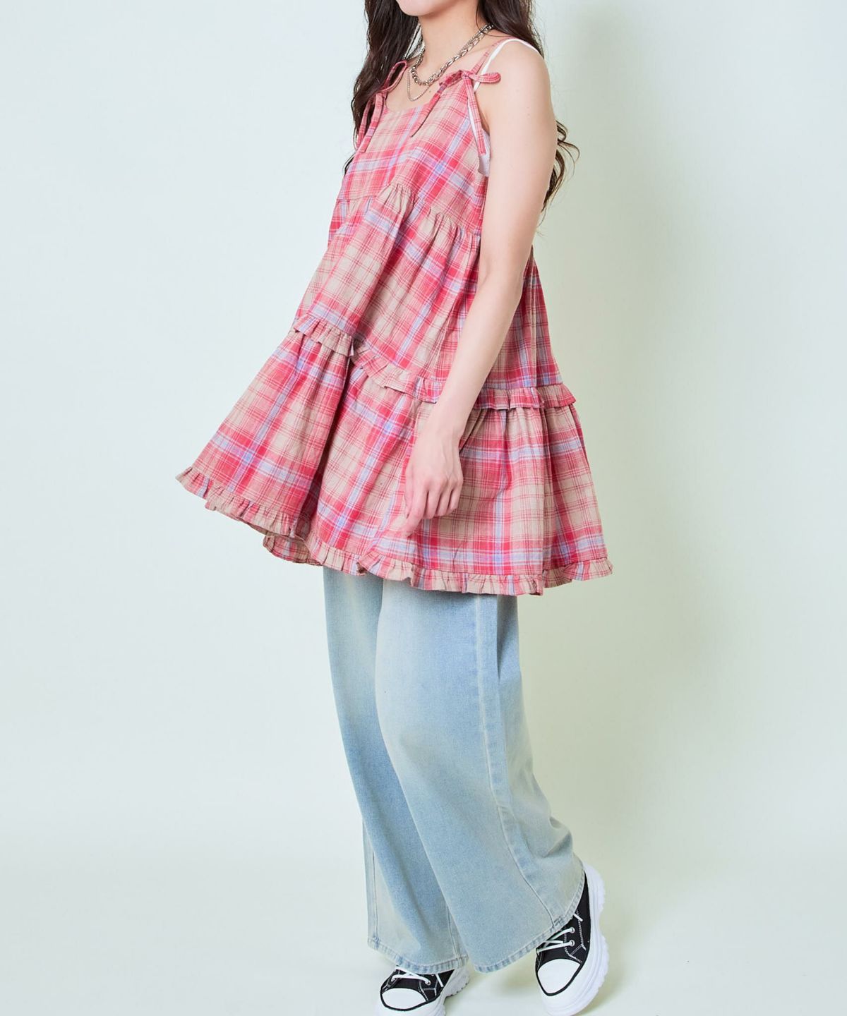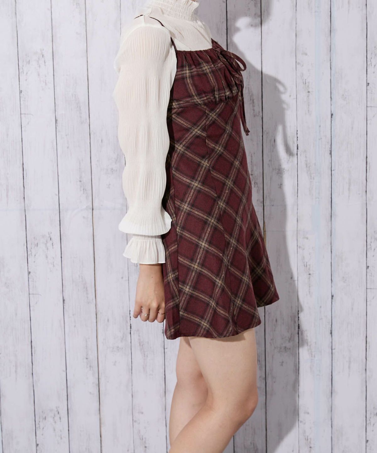 《起毛チェック柄》レディース キャミワンピ チュニック レイヤード 秋冬