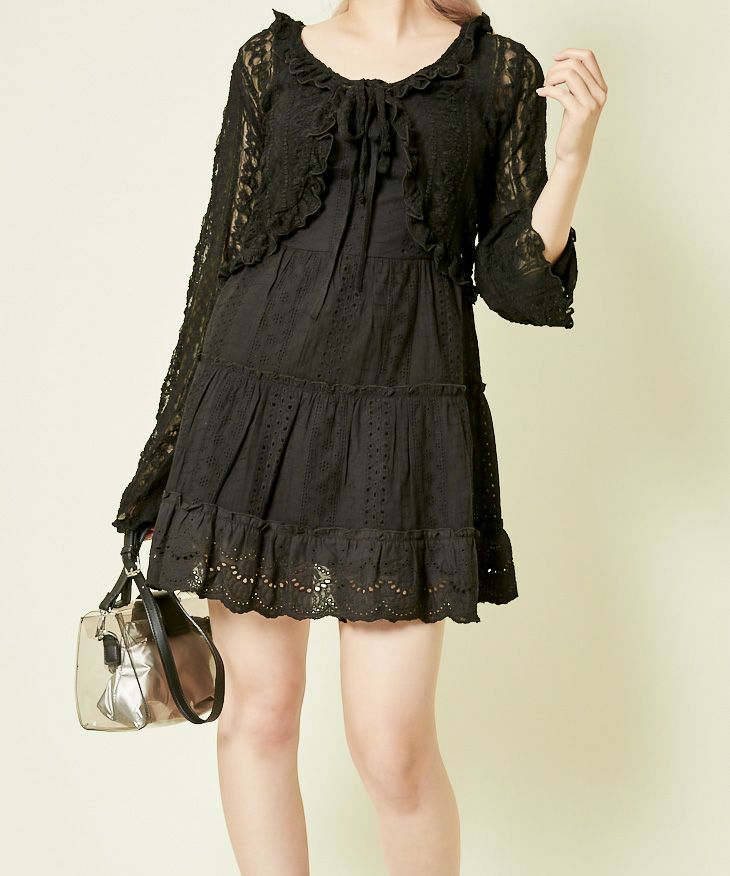 《レース×ティアード》レディース キャミワンピ ミニ丈 体型カバー 春夏