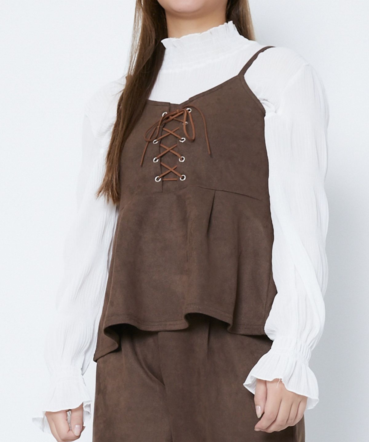 他の画像を見る 《スエード調×レースアップ》レディース キャミソール+ワイドパンツ 2点セットアップ オールシーズン 2BUY10%OFF 定価 ¥ 6,589 のところ SALE価格 ¥ 2,739 税込 カートに入れる お気に入りに登録する