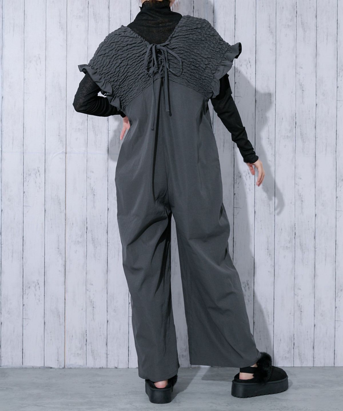 《シャーリング×美シルエット》レディース サロペット フェミニン 体型カバー 春夏秋