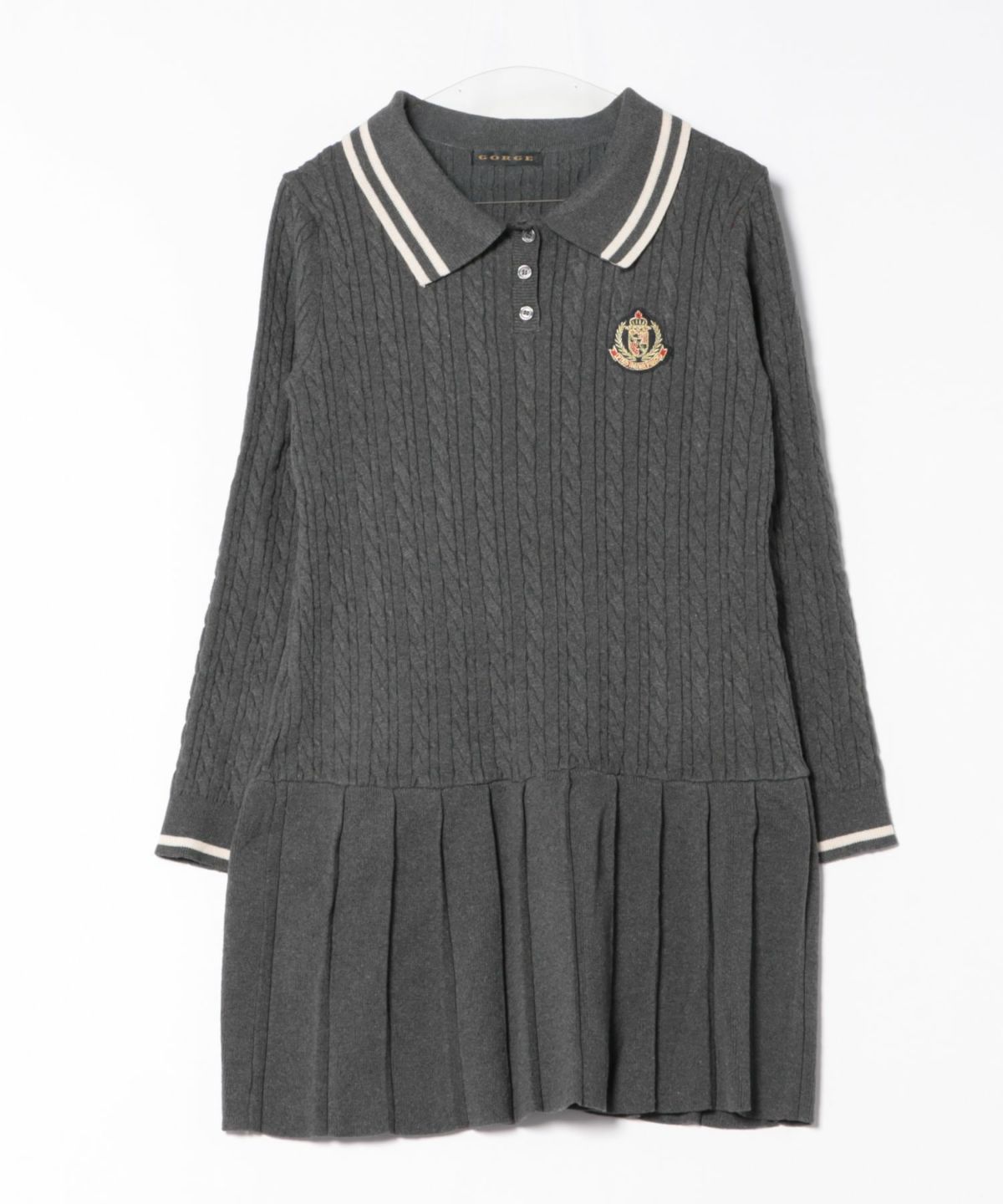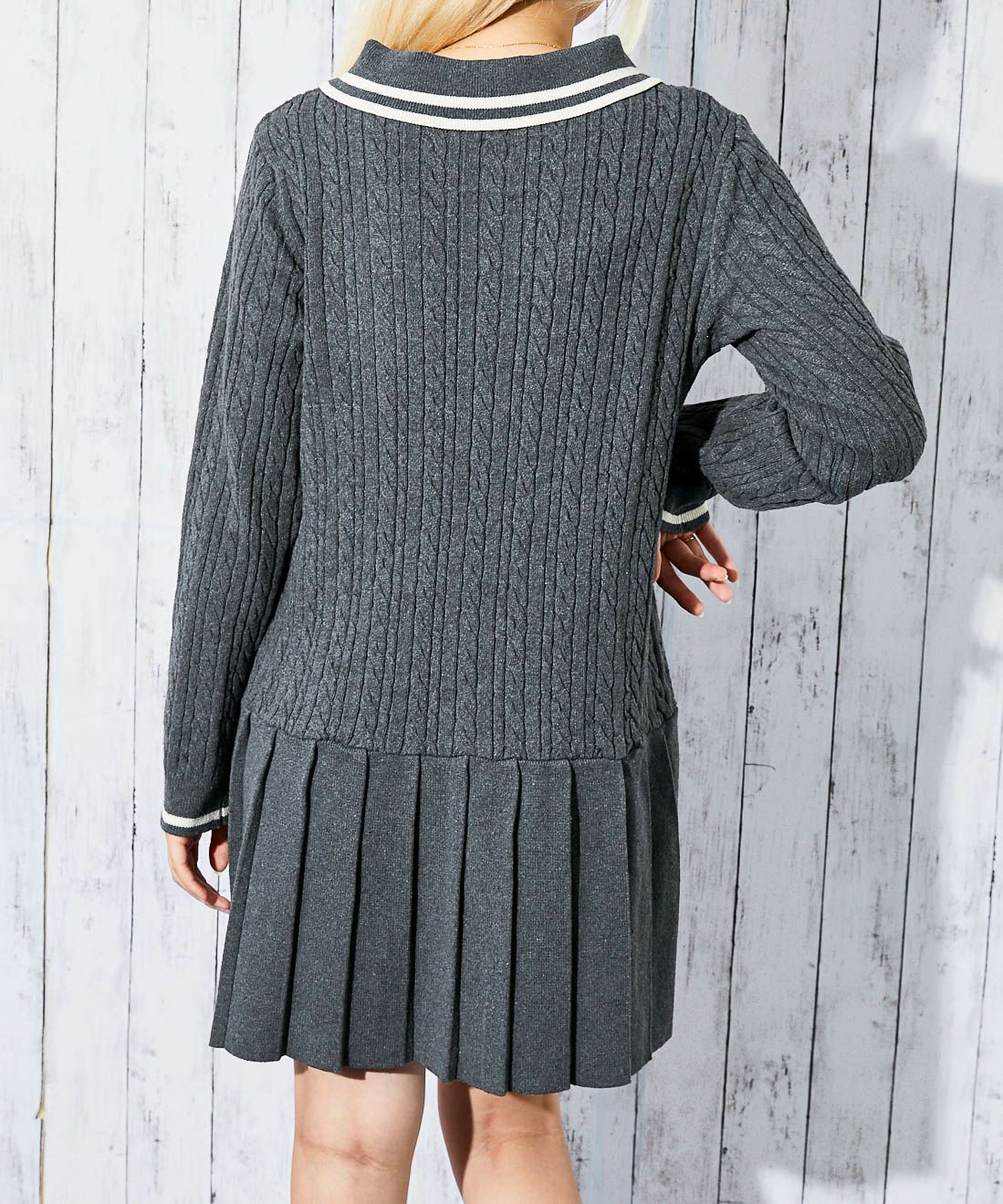 《スクールライク×上品ケーブル》レディース ニットポロ チュニックワンピ 体型カバー 秋冬