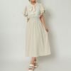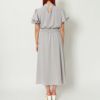 前後でデザインが異なり、こなれ感たっぷりに仕立てたボウタイデザインのワンピース。ウエストシャーリングからふんわり広がるフレアラインで緩急の効いたシルエットに◎動いたときに流れるような美しさを醸し出すダブルフリルスリーブが女心をくすぐるポイント。バックがやや開いたオープンデザインは、計算されたバランスのヘルシーな肌見せも叶う一枚です♪