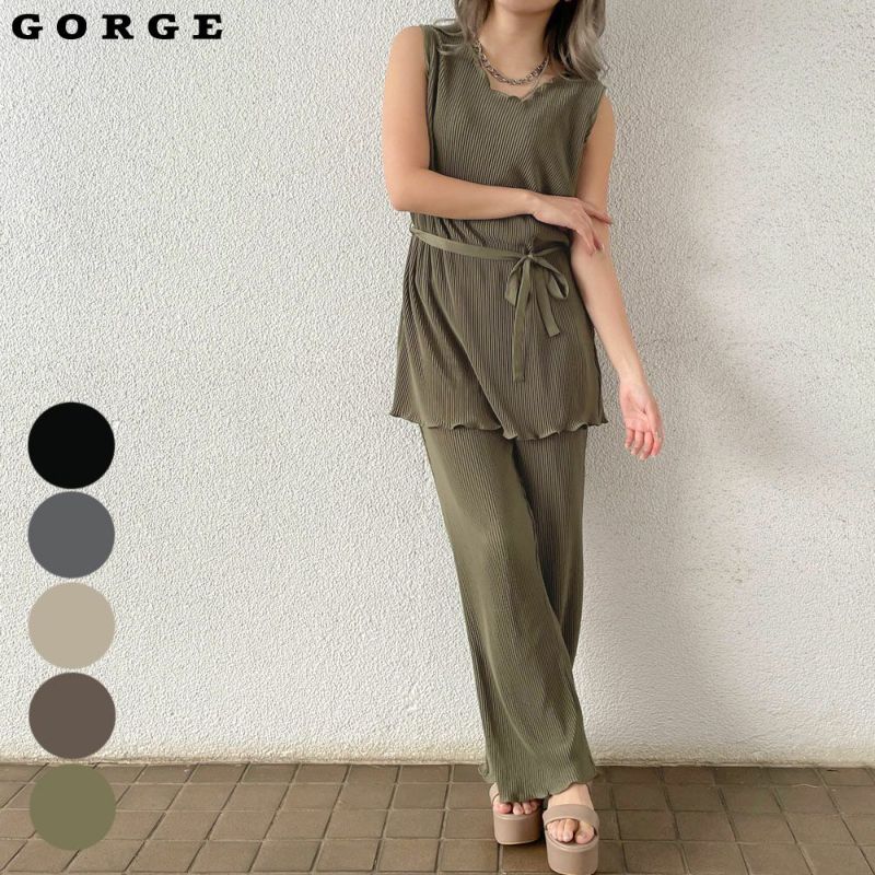 ノースリーブトップスとパンツのセットだから、これだけで即コーデが完成します◎