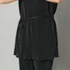 ・縦ラインを強調するプリーツ素材で細見え効果