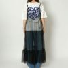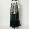 コーデに華をプラスするチュールキャミワンピース。シンプルなチュールにフロントのリボンと裾のギャザーが大人可愛いアイテム♪いつものコーデにレイヤードするだけでワンランク上のお洒落が楽しめます。Tシャツとデニムなどカジュアルアイテムと合わせたコーデがオススメです!