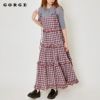 絶妙なバランスで重なるティアードデザインが女性らしいシルエットを演出。柄が全体のアクセントになりつつ、存在感を持たせてくれます。
