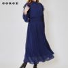 ふんわり軽やかなシフォン素材と繊細なプリーツが魅力のワンピース。プチハイネックデザインが上品さを引き立て、大人の女性らしい着こなしを演出します。