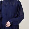 柔らかなシフォン素材がふんわりと体を包み込み、動くたびに揺れるプリーツがエレガントな印象をプラス。プチハイネックがデコルテラインをきれいに見せ、シンプルながらも洗練されたシルエットに仕上げました。ウエストマークデザインでスタイルアップ効果も◎