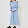 フロントに施されたピンタックが縦のラインを強調し、スタイルアップ効果も期待できるデザイン。フリルが可愛らしいアクセントを加えつつ、甘くなりすぎない上品なシルエットに仕上げました。ゆったりとしたシルエットで着心地も抜群◎