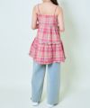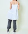 ショルダー部分のリボンと、段になったティアードシルエットがポイント。動くたびにふわっと揺れる裾がフェミニンな印象を与えてくれます。ギャザーの分量感が程よく、体のラインを拾いにくいので体型カバーも◎生地にはほどよいハリがあり、立体的なシルエットをキープしてくれます。