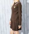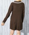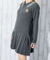 ケーブル編みのクラシックな表情に、衿付きポロデザインをプラスしたチュニックワンピ。胸元のワンポイント刺繍とプリーツ切替の裾デザインが、スクールライクな雰囲気を演出します。