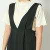 きれい見えするVネックにふんわりフレアシルエットが女性らしいシアーインナー付きジャンパースカートが登場★やや長めの丈感で大人っぽくこなしやすい一枚♪インナーにロゴTシャツなどカジュアルなアイテムでミックス感を出しても◎スタイルの主役になりながら、着回し力の高いアイテムです☆