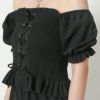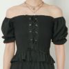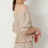 単品でも使えて着回し力抜群なセットアップの登場★フィット感のあるシャーリング加工に編み上げデザインでウエストをカバーし、すっきりと見せてくれます♪パワショルでも、オフショルでも2パターンの着こなしで楽しめる◎スポサンやペタンコサンダルを合わせれば、抜け感あるヘルシーなスタイリングにも変身です☆